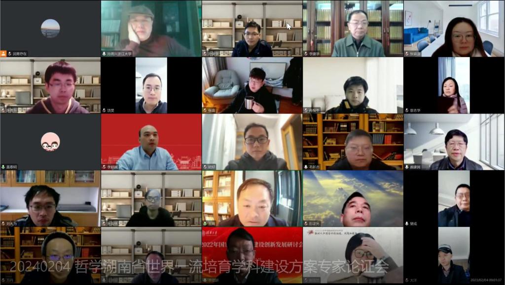 (供稿 公共管理学院)2月4日上午,我校在线上召开了湖南省世界一流培育学科(哲学)建设方案专家论证会,副校长王辉、杨震出席会议,会议由王辉主持。