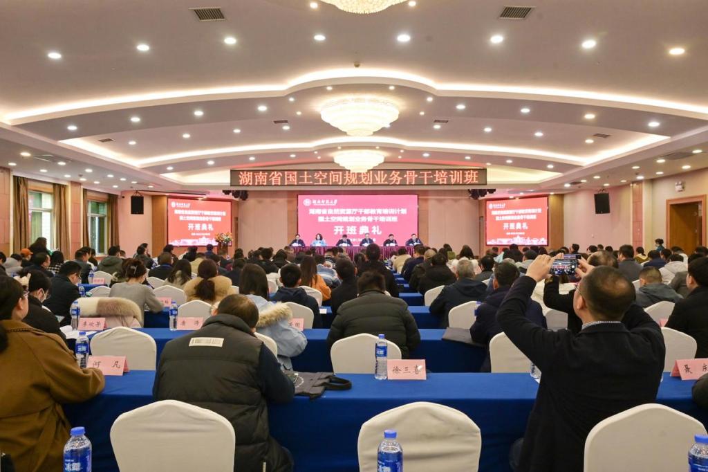 省自然资源厅国土空间规划局领导,我校地理科学学院有关负责人,来自全省14个市州的自然资源局分管副局长、科室负责人和122个县(市、区)的自然资源局业务股室负责人共200余人参加开班典礼。
