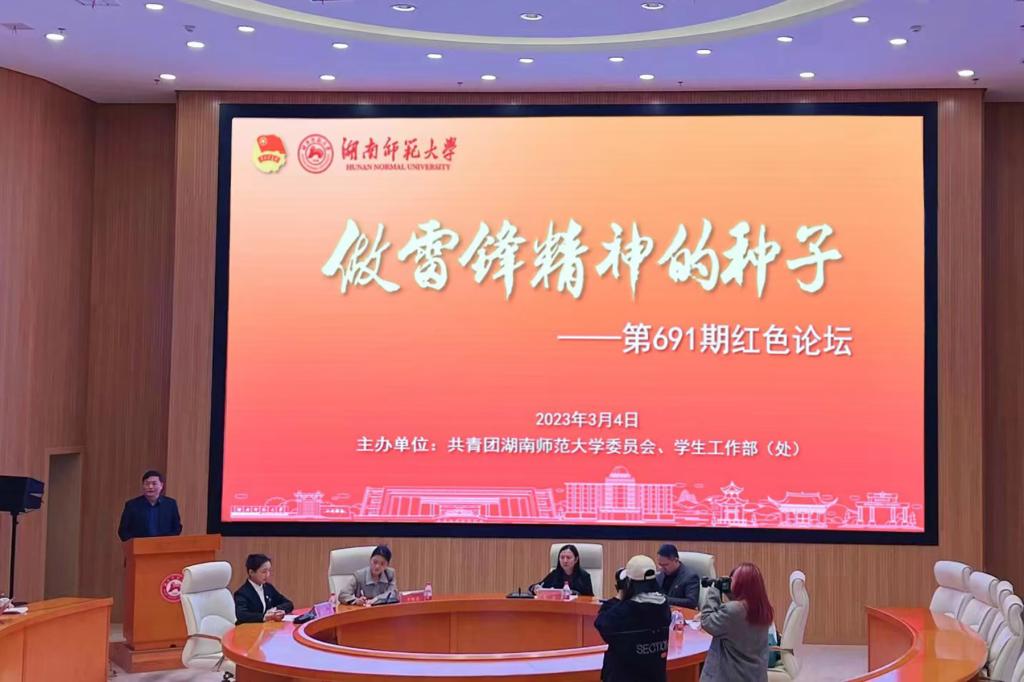 我校学雷锋志愿者(团队)代表2022年全国文旅志愿服务典型案例、湖南省2022年学雷锋志愿服务全省“五个一批”最佳志愿服务组织、旅游学院文旅志愿服务队,全国大中专学生志愿者暑期“三下乡”社会实践活动优秀团队外国语学院“语你同行”志愿服务团队,湖南省援藏工作队实习生、“芙蓉学子 道德风尚奖”获得者、新闻与传播学院研究生李晓倩,湘西州新时代文明实践志愿服务“最美志愿者”、第24届研究生支教团成员邓郭欢等结合自身志愿服务经历,展现了师大学子在雷锋精神的感召下,爱党爱国、服务人民、爱岗敬业、锐意进取、艰苦奋斗的精神风貌。