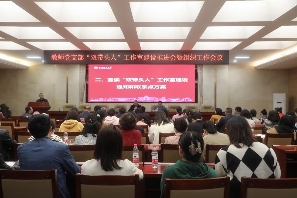校党委委员、组织部部长沈又红宣读了“双带头人”工作室建设的通知和联系点方案。周俊武、沈又红为我校首批“双带头人”教师党支部书记工作室授牌。
