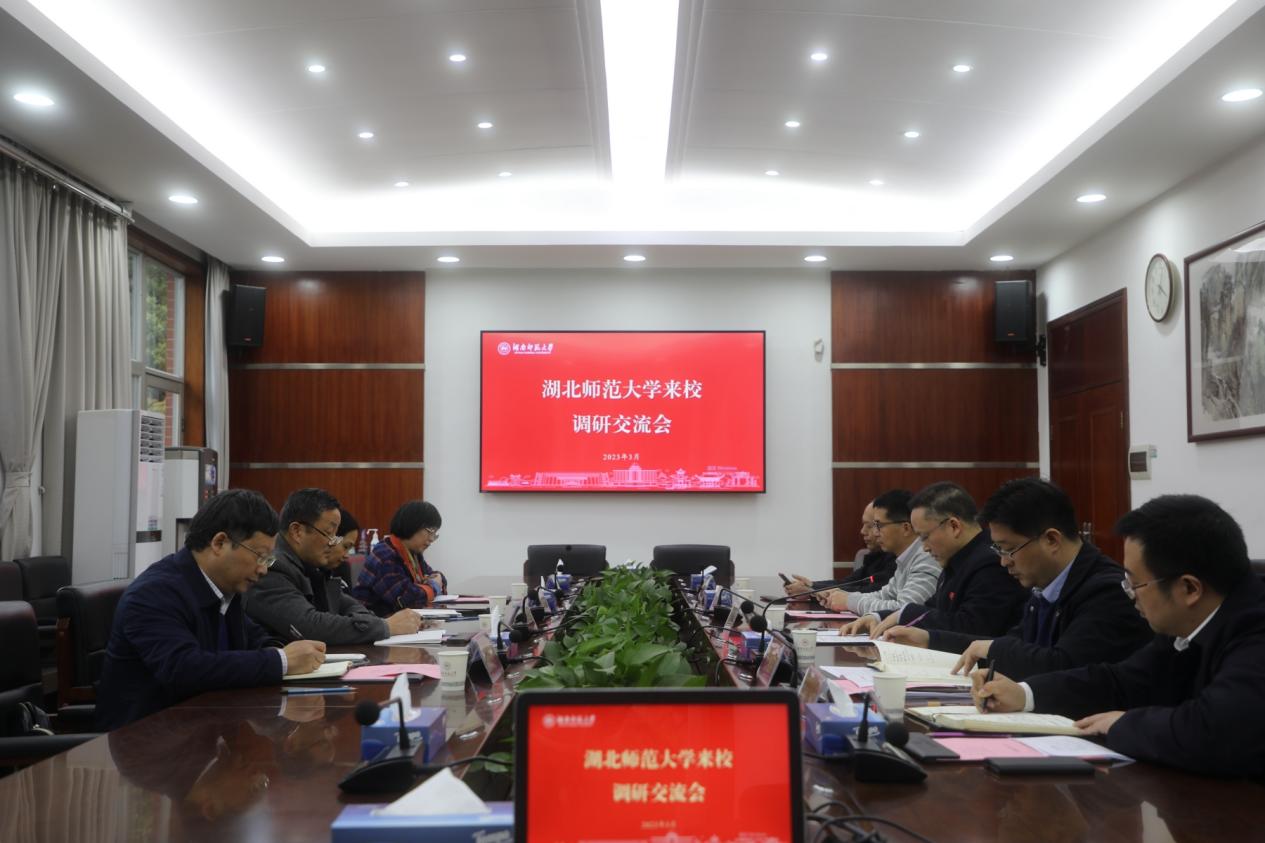 (记者 项和烽 陈治宇)3月17日下午,湖北师范大学党委副书记、校长雷儒金一行来我校调研交流。调研座谈会在校办公楼二会议室举行。我校副校长刘子兰出席并主持会议。