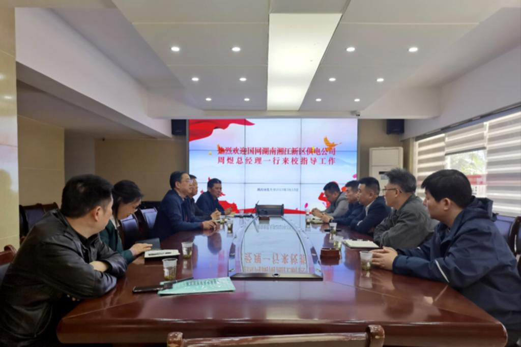 刘怀德对周煜一行的到来表示欢迎,对国网湖南湘江新区供电公司一直以来对我校的关心支持表示感谢,并介绍了学校供电保障工作的有关情况。