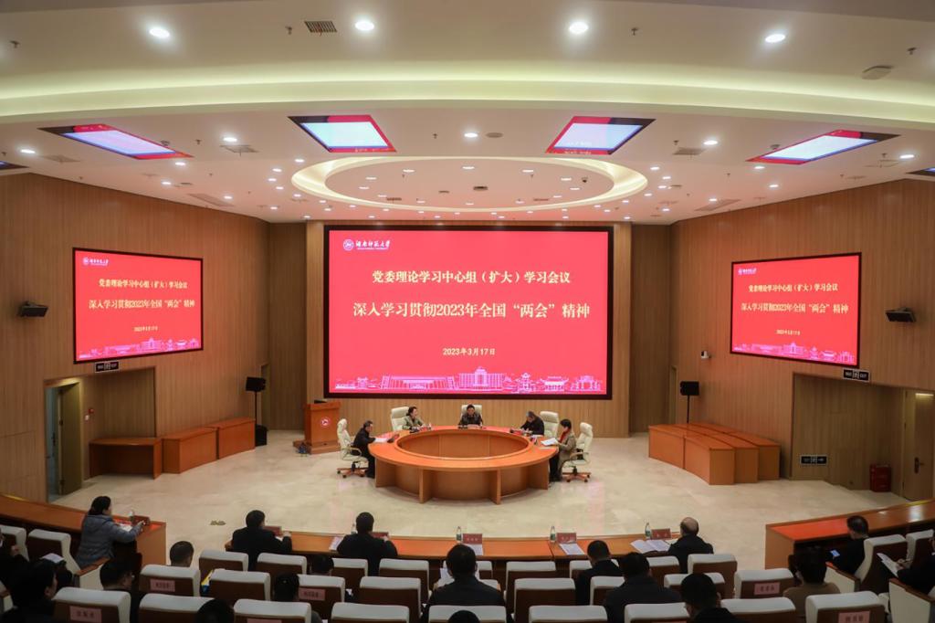 (记者 吴乐 马铁泉 冯振辉 刘偲睿)3月17日上午,校党委理论学习中心组(扩大)在图书馆报告厅召开专题学习会,深入学习贯彻2023年全国“两会”精神。校党委书记蒋洪新,校党委副书记周俊武,纪委书记姚春梅,副校长蒋新苗、王辉、刘子兰、谢资清,党委委员沈又红、段巍、杨念参加学习会。周俊武主持会议。