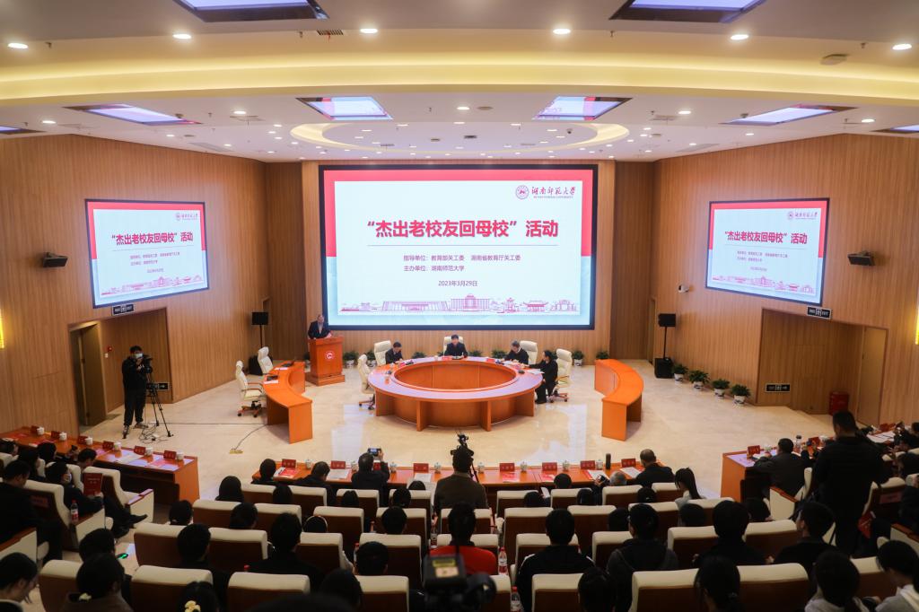 (记者 马铁泉 冯振辉)3月29日,我校举办“杰出老校友回母校”活动。湖南省社会科学院原院长、党组书记,长沙县开慧村第一党支部书记、杰出老校友朱有志回到母校与师生座谈交流。教育部关工委常务副主任杨贵仁,教育部离退休干部局党委书记、局长,关工委常务副主任于虹,关工委秘书长郝雅梅,湖南省教育工委副书记、省教育厅关工委主任王建华,我校党委书记、校关工委名誉主任蒋洪新等出席。活动由校党委副书记、关工委主任周俊武主持。