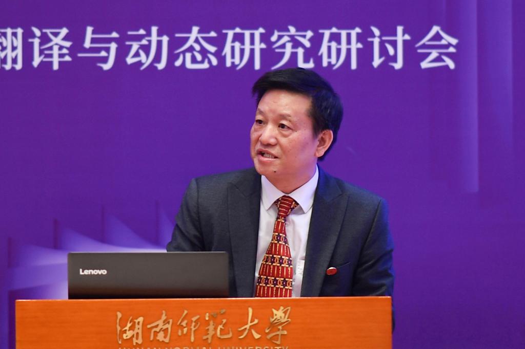 蒋洪新向出席研讨会的专家学者表示热烈欢迎,并简要介绍了我校及外国语言文学学科的建设发展情况。他指出,当今世界百年未有之大变局加速推进,习近平总书记强调要“不忘本来,吸收外来,面向未来”,提出要“准确识变、科学应变、主动求变”,这是新时代中国特色社会主义文化的发展方向,也是我国外国文学研究的发展方向。他希望,以本次研讨会为平台,专家学者共同探讨外国文学翻译等重要话题,思考如何将国外好的文化引进来、把自己鲜活的故事传播出去,为当代文学研究提供启发借鉴。