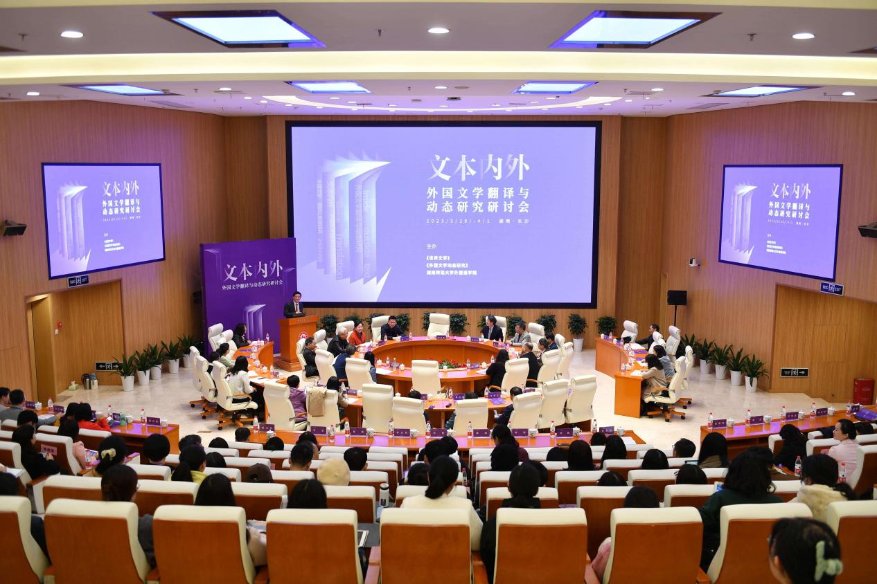 (供稿 外国语学院)3月30日,“文本内外:外国文学翻译与动态研究研讨会”在我校开幕。校党委书记、欧洲科学院院士蒋洪新教授,中国社科院学部委员、我校“潇湘学者”特聘教授陈众议,湖南省作家协会副主席沈念,《世界文学》主编高兴,《外国文学动态研究》主编苏玲等出席开幕式。