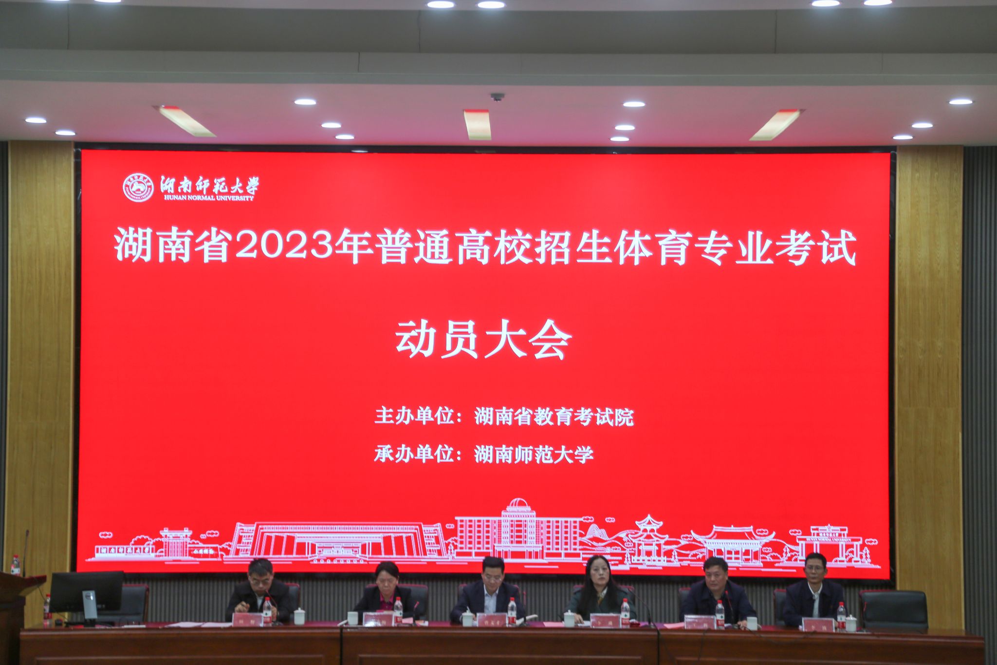 (记者 李影 项和烽)4月10日上午,湖南省2023年普通高校招生体育类专业统一考试动员大会在我校召开。省教育考试院院长、党委副书记、纪委书记曹文才,我校纪委书记姚春梅、副校长王辉出席会议。会议由我校招生与就业指导处处长田野主持。