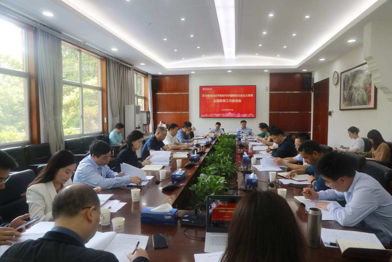 (记者 马境韩)4月17日下午,我校在校办公楼二会议室召开学习贯彻习近平新时代中国特色社会主义思想主题教育工作推进会。校党委副书记周俊武出席会议,主题教育领导小组办公室全体成员和工作组、督导组负责人参加会议,会议由校党委委员、党委组织部部长沈又红主持。