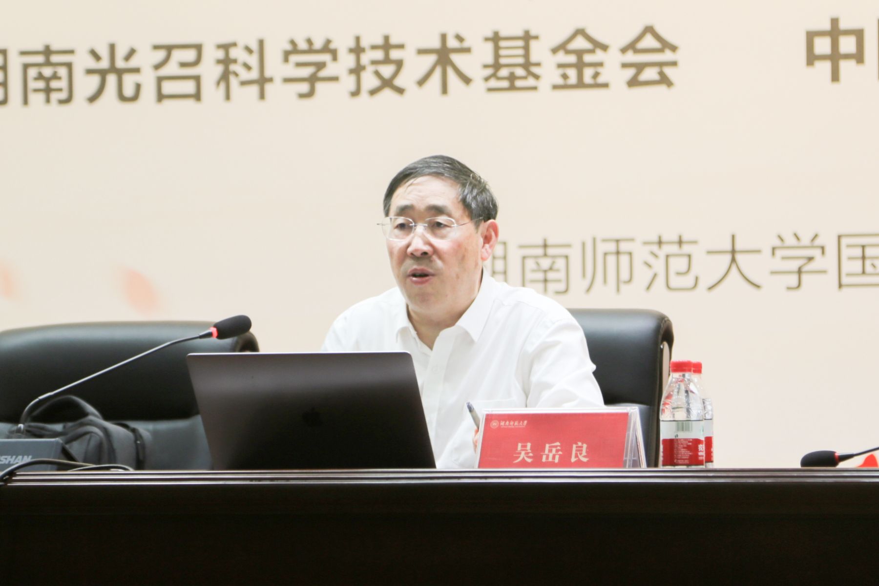 与会领导为“光召创新奖学金”获奖同学颁奖。颁奖仪式后,作为周光召先生的得意弟子,吴岳良院士深情回顾了在光召先生身边学习和工作的点滴,并围绕宇宙和物质起源与时空和引力本质,作题为《超统一场论——关于物质-运动-时空-宇宙观念的重新认识》的主题报告。潘安练教授作题为《新一代低维半导体芯片技术》的主题报告。