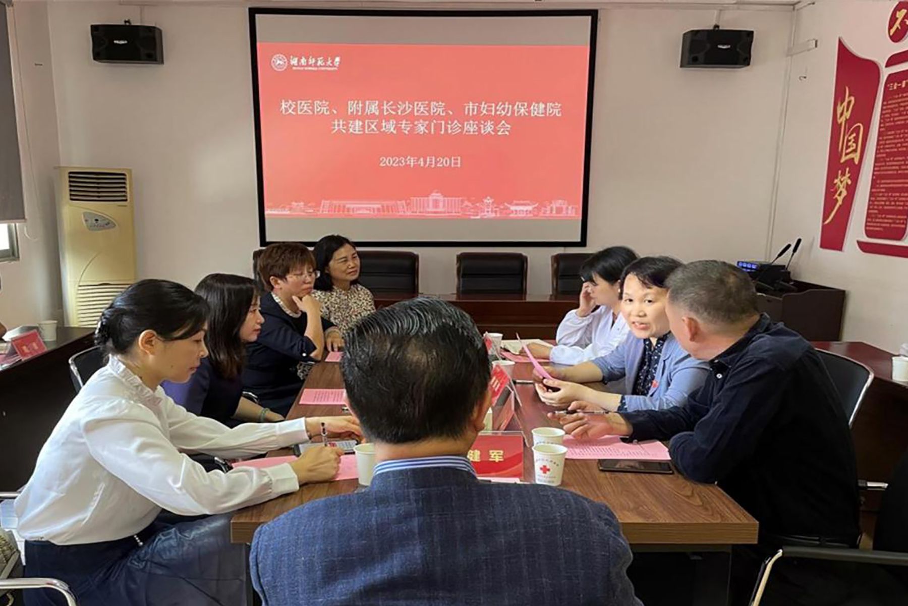 (通讯员 全宏姣)4月20日上午,我校召开校医院区域专家门诊座谈会暨长沙市妇幼保健院共建区域专家门诊揭牌仪式。副校长谢资清出席仪式,仪式由校医院院长周国强主持。