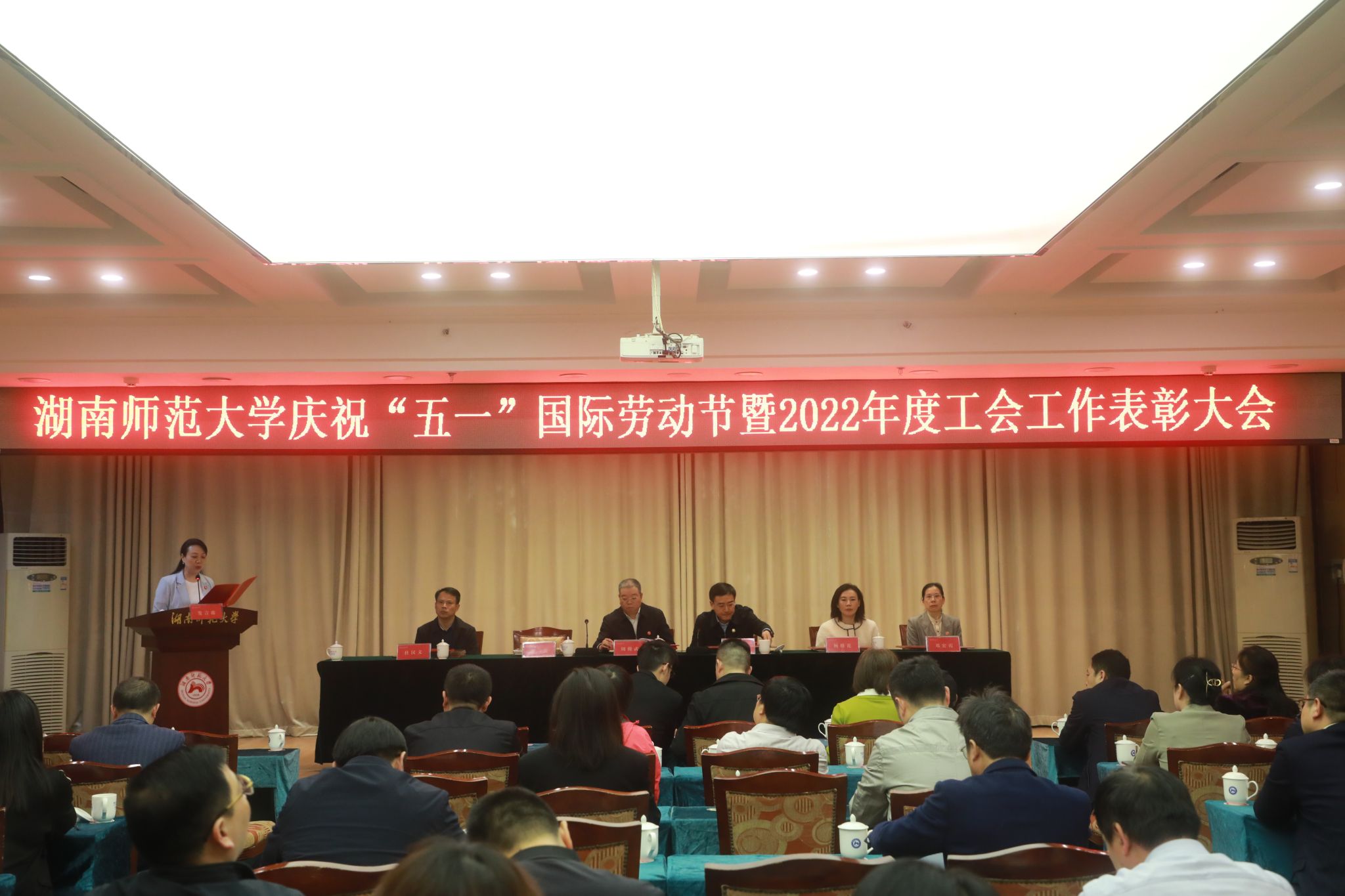 (供稿 校工会)4月26日下午,我校庆祝“五一”国际劳动节暨2022年度工会工作表彰大会在红楼五楼会议室召开。校党委副书记、校工会主席周俊武出席会议。大会由校工会常务副主席余英主持。