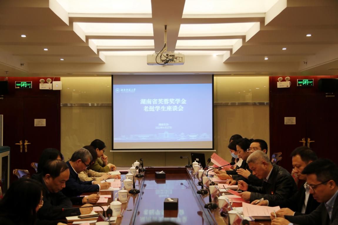 (记者 薛舒丹 高壮壮)4月27日下午,我校在红楼四楼会议室举办湖南省芙蓉奖学金老挝学生座谈会。省对外友协专职副会长郭向丽,省教育厅国际交流处处长周芳友,我校副校长唐贤清出席会议。会议由我校国际交流合作处副处长唐存忠主持。
