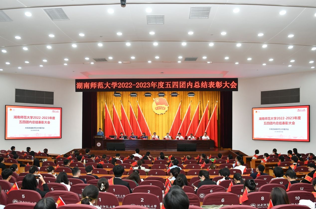 湖南洋光在线教育科技有限责任公司董事长刘红平和学校相关单位负责人及2023年五四获奖集体、个人代表等180余人参加大会。