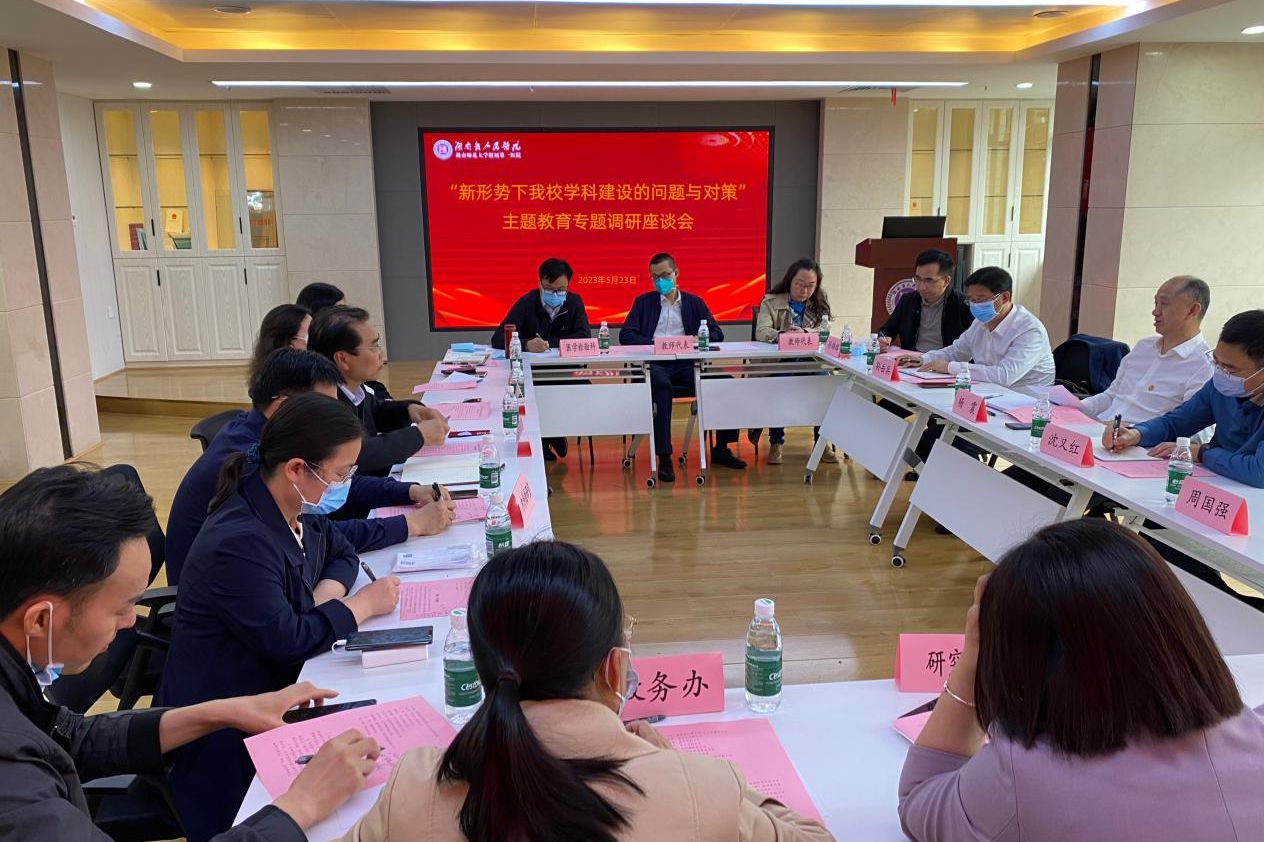 (供稿 发展规划与学科建设处)5月23日下午,“关于新形势下我校学科建设的问题与对策调研”主题教育专题座谈会在临床医学院410会议室举行。座谈会由副校长杨震主持。