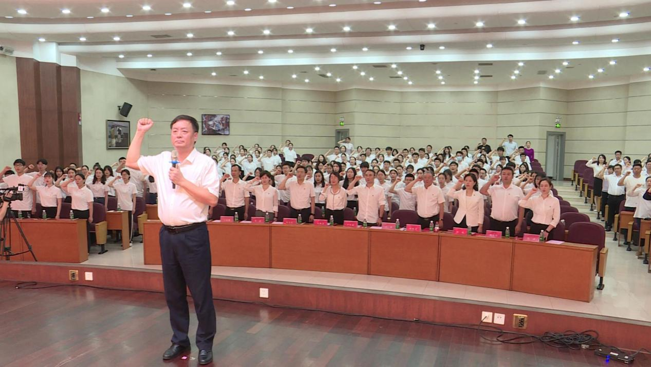 王辉带领全体毕业生党员重温入党誓词,青年学子许下铮铮誓言,接受了一次深刻的党性洗礼。