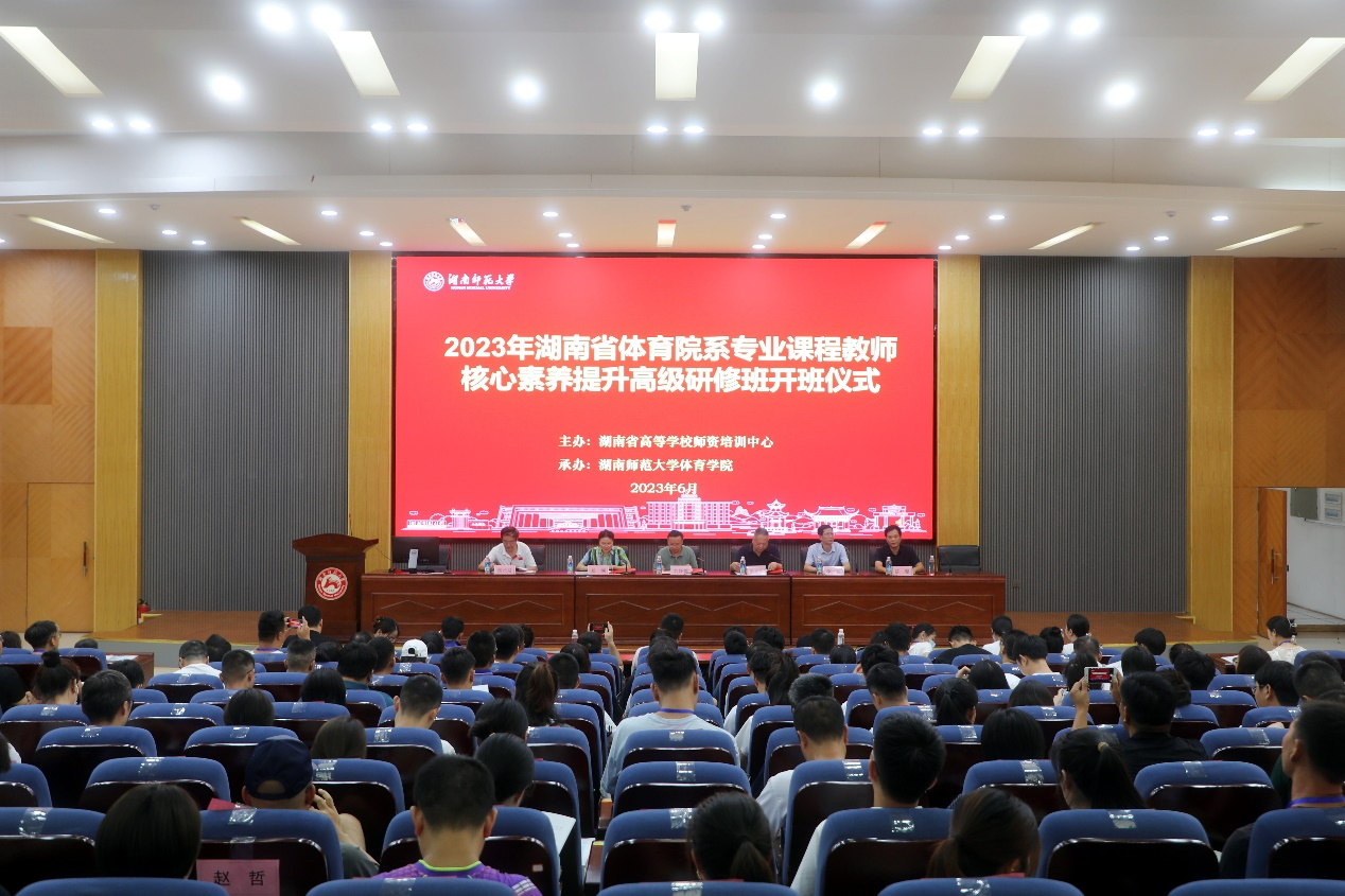 (记者 薛舒丹 易璇)6月12日下午,由湖南省教育厅、湖南省高等学校师资培训中心组织,我校体育学院承办的2023年湖南省体育院系专业课程教师核心素养提升高级研修班开班仪式在我校体育学院教学楼二楼举行。我校副校长刘怀德出席仪式,仪式由体育学院院长郑澜教授主持。