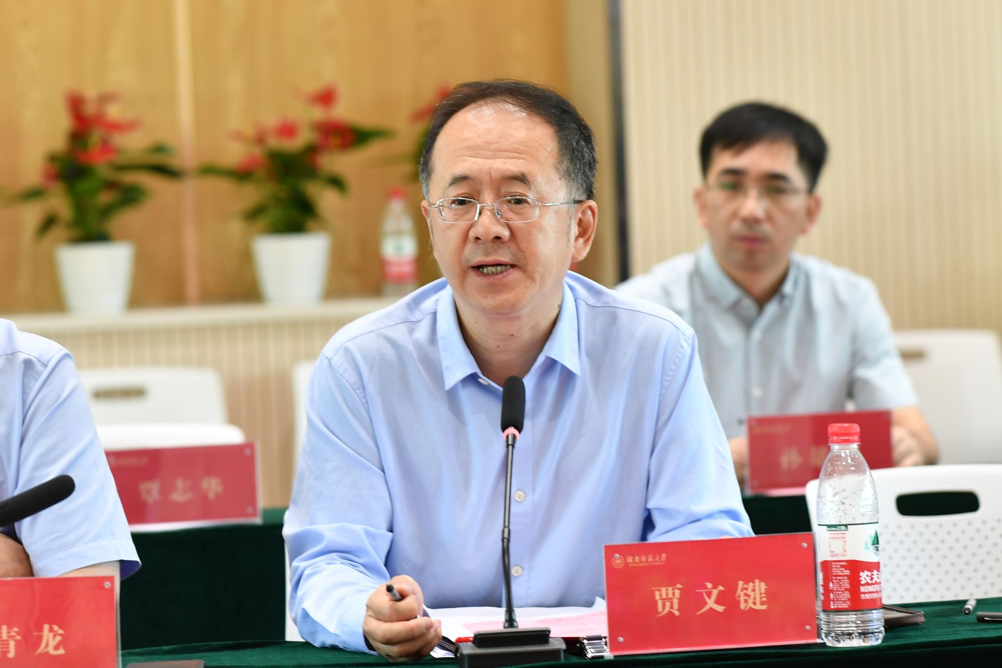 校党委书记蒋洪新致欢迎辞。他代表学校对评审专家的到来表示热烈欢迎,并简要介绍了我校“双一流”建设的基本思路与建设成效。蒋洪新表示,近年来,我校集全校之力加强“双一流”建设,主动融入和服务国家与区域重大战略,期待评审专家为我校“双一流”建设的进一步发展提出宝贵意见。