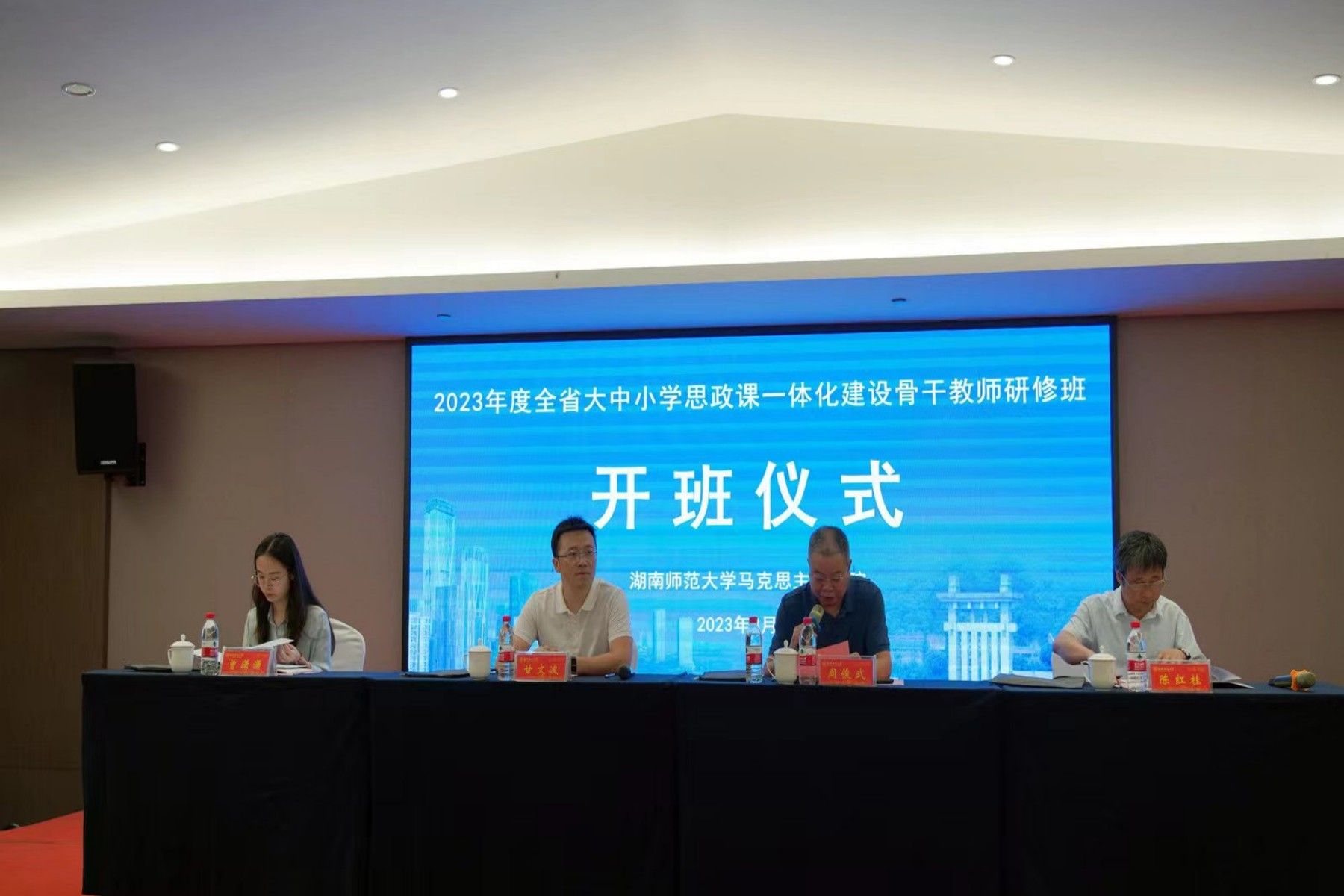 (供稿 马克思主义学院)8月25日,由湖南省教育厅主办、华亿体育登录承办的2023年度湖南省大中小学思政课一体化建设骨干教师研修班顺利举行。省委教育工委宣传部部长、省教育厅思政处处长甘文波,我校党委副书记周俊武出席开班仪式。开班仪式由马克思主义学院党委书记陈红桂主持。