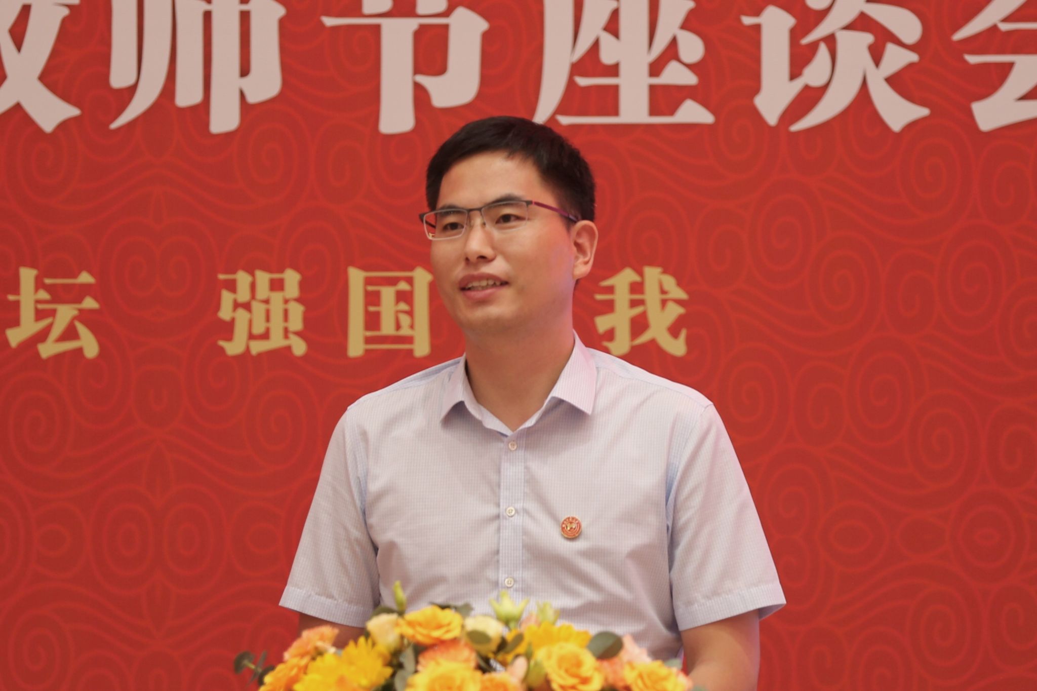 老师是我们的引路人和筑梦者。在这美好节日里,代表青年老师和潇湘学者,向学校党委和全体教职员工表示感谢和祝福。你们的辛勤付出让我们受益匪浅。作为学生,特别感谢启蒙老师唐东升教授的悉心培养,没有您,就没有今天的我。我也想借此机会提出建议,人才强校战略是学校进步的重要支撑,各学科的崛起得益于领导们的重视和教师队伍的建设。我们应继续引进高水平青年人才,组建高水平研究团队,以团队协作为我校将来培育更多拔尖创新人才提供坚实的基础。