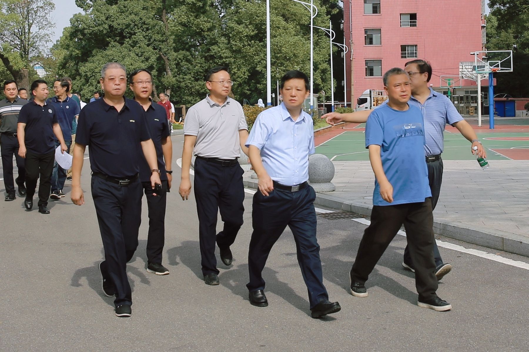 蒋洪新前往张公岭校区、靳江学生公寓等地,深入了解校园环境优化、安全设施配备和宿舍保障工作的落实情况,重点检查了基础建设、安全管理、宿舍食堂提质改造和安全隐患等方面的情况,并认真听取了相关负责人的工作汇报。