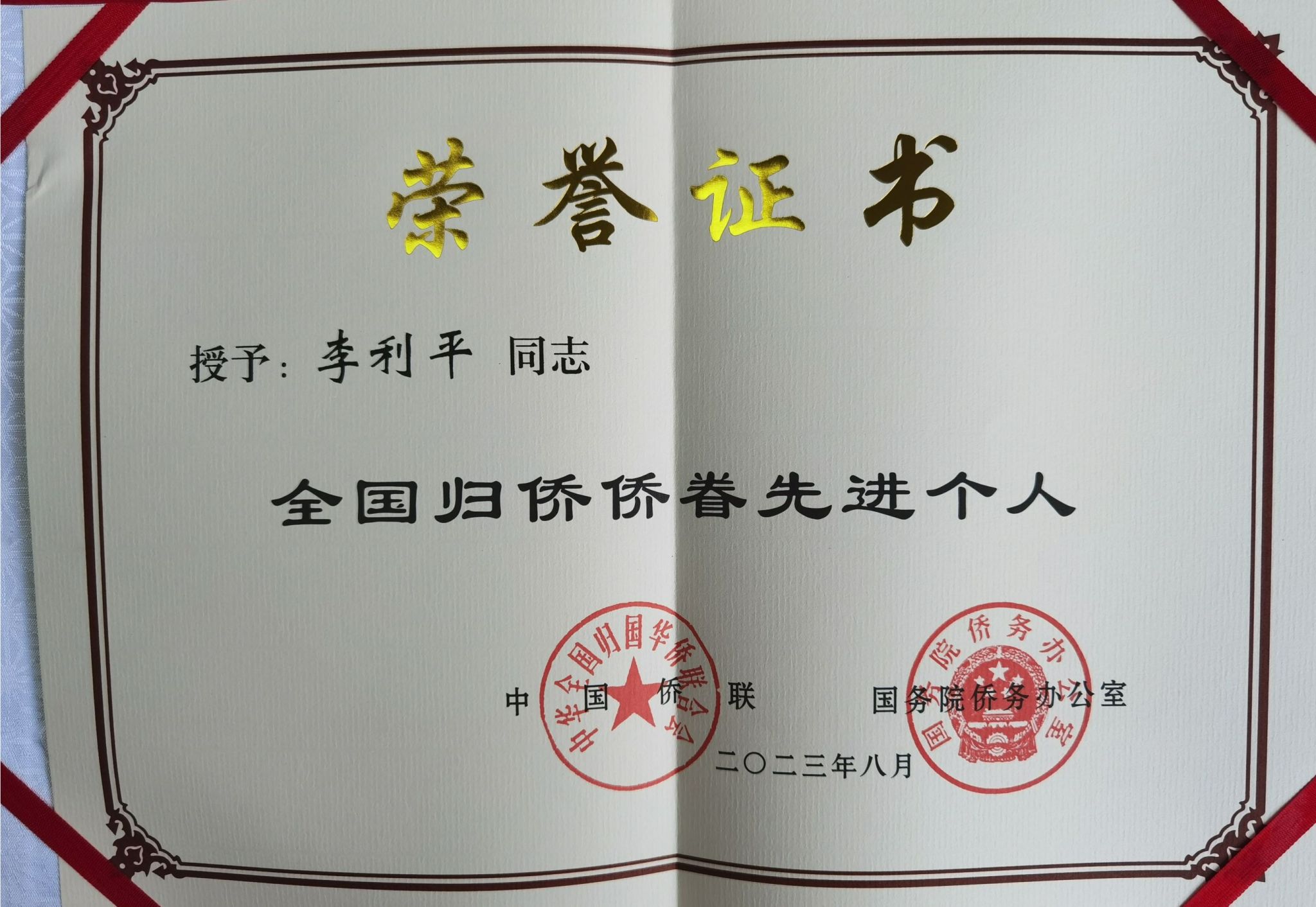 (供稿 党委统战部)近日,第十一次全国归侨侨眷代表大会在北京人民大会堂开幕。会上宣读了《中国侨联、国务院侨办关于表彰中国侨界杰出人物和全国归侨侨眷先进个人的决定》《人力资源社会保障部、中国侨联关于表彰全国侨联系统先进集体和先进工作者的决定》《中国侨联关于表彰全国侨联系统先进组织和先进个人的决定》,并为获奖单位和个人颁奖。我校侨联主席、数学与统计学院院长李利平教授荣获“全国归侨侨眷先进个人”荣誉称号。