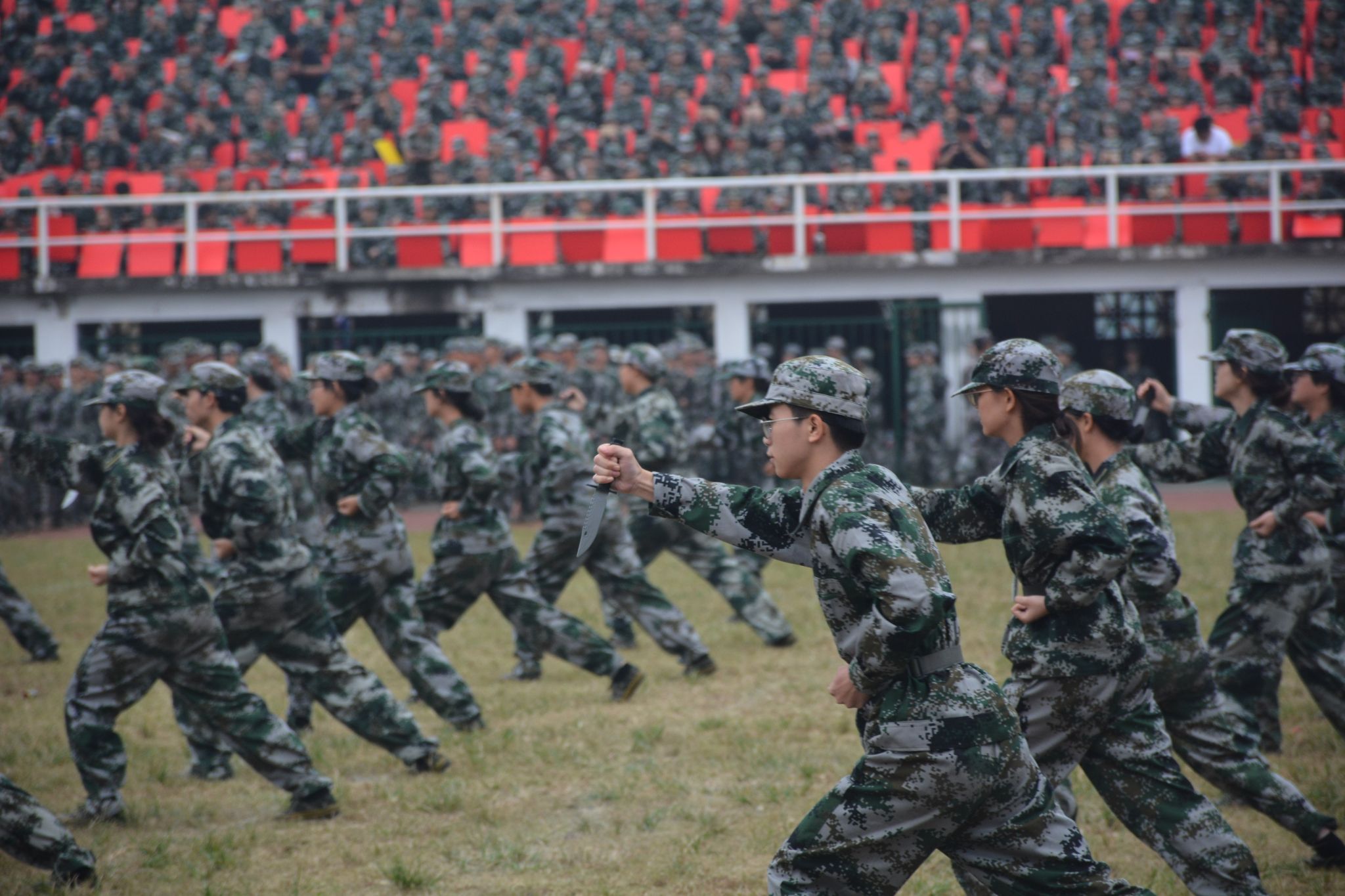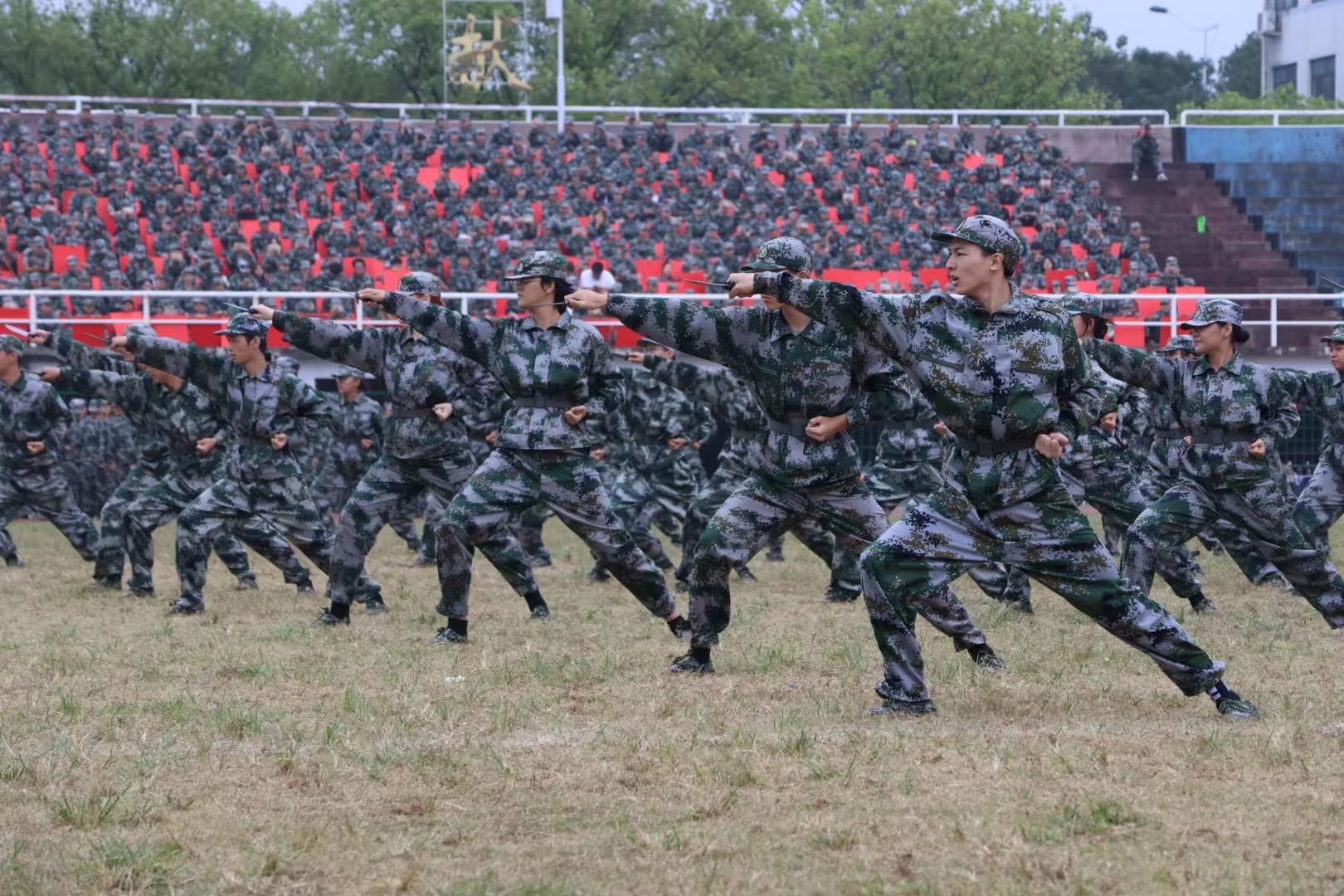 文学院、公共管理学院、新闻与传播学院带来匕首操表演,气势如虹,激荡着青春热血。