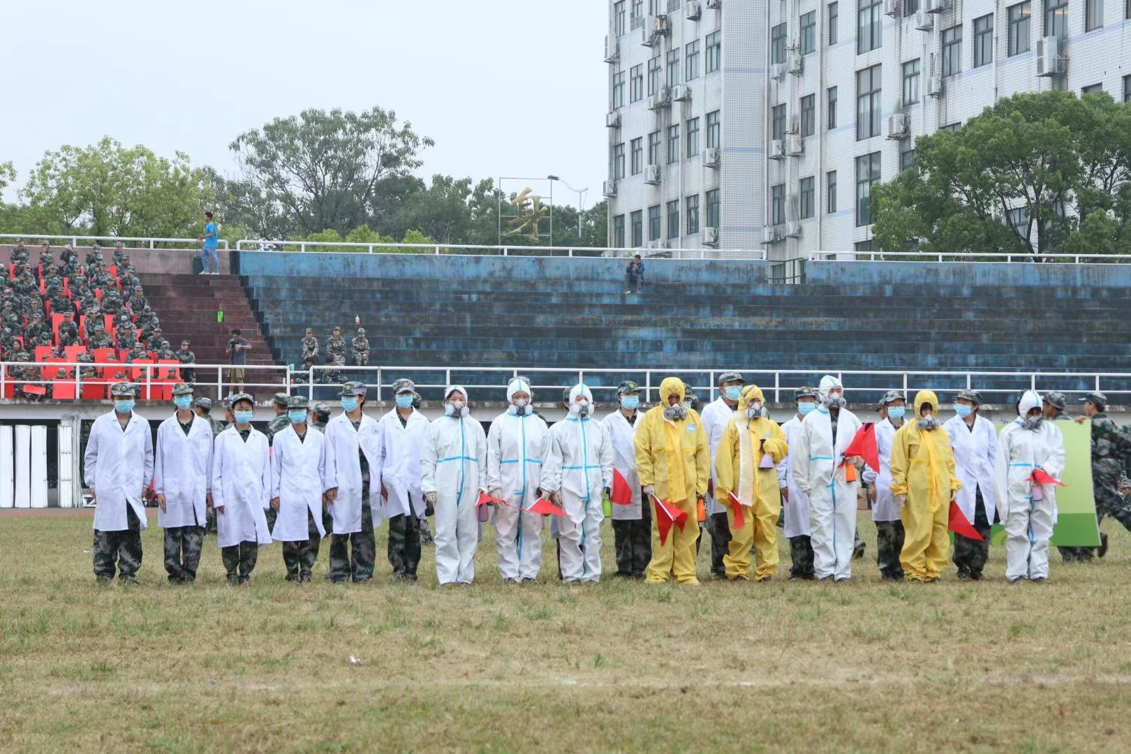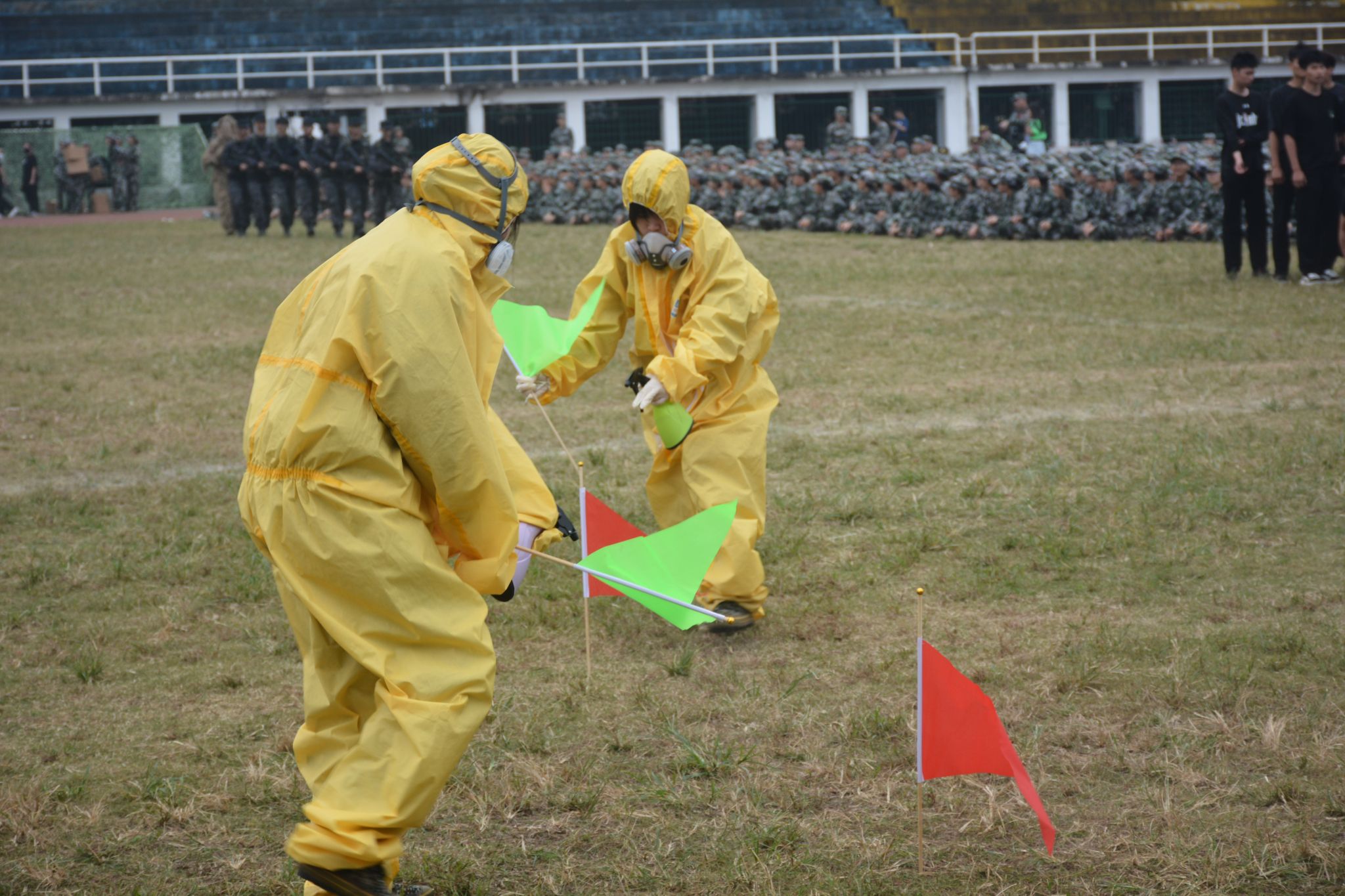 生命科学学院、化学化工学院带来核生化防护演练表演,旨在敲响警钟,防患未然。