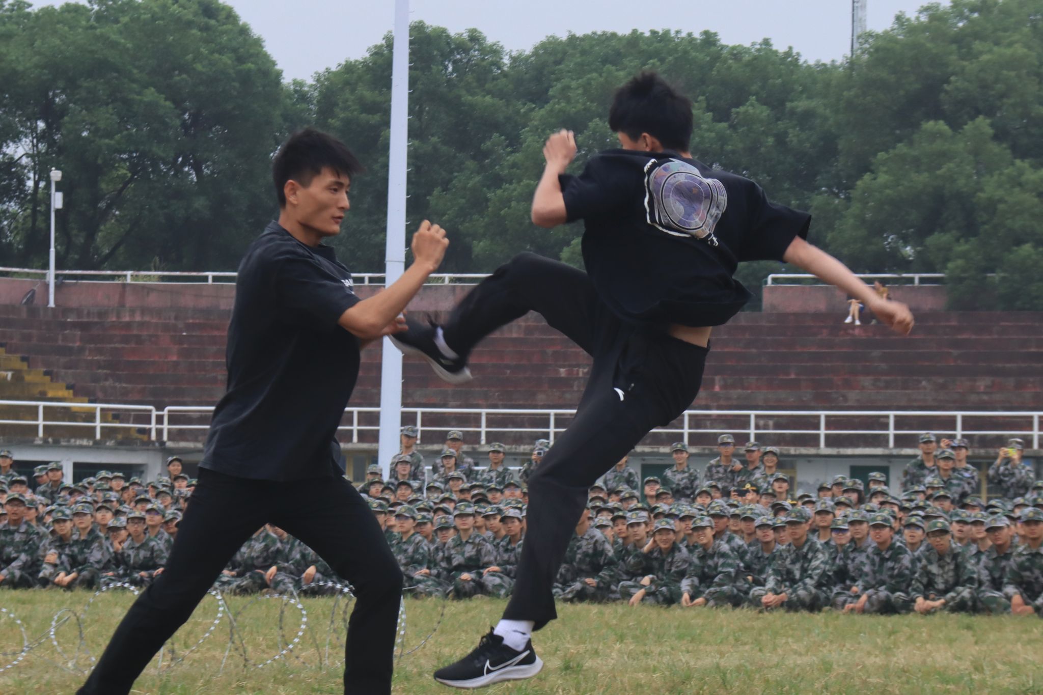 工程与设计学院,商学院、马克思主义学院、外国语学院、数学与统计学院、世承书院、信息科学与工程学院共同组成的格斗术方阵带来精彩表演,齐如排排战舰,近似滚滚洪流,迅若浩浩疾风,声如涛涛惊雷。