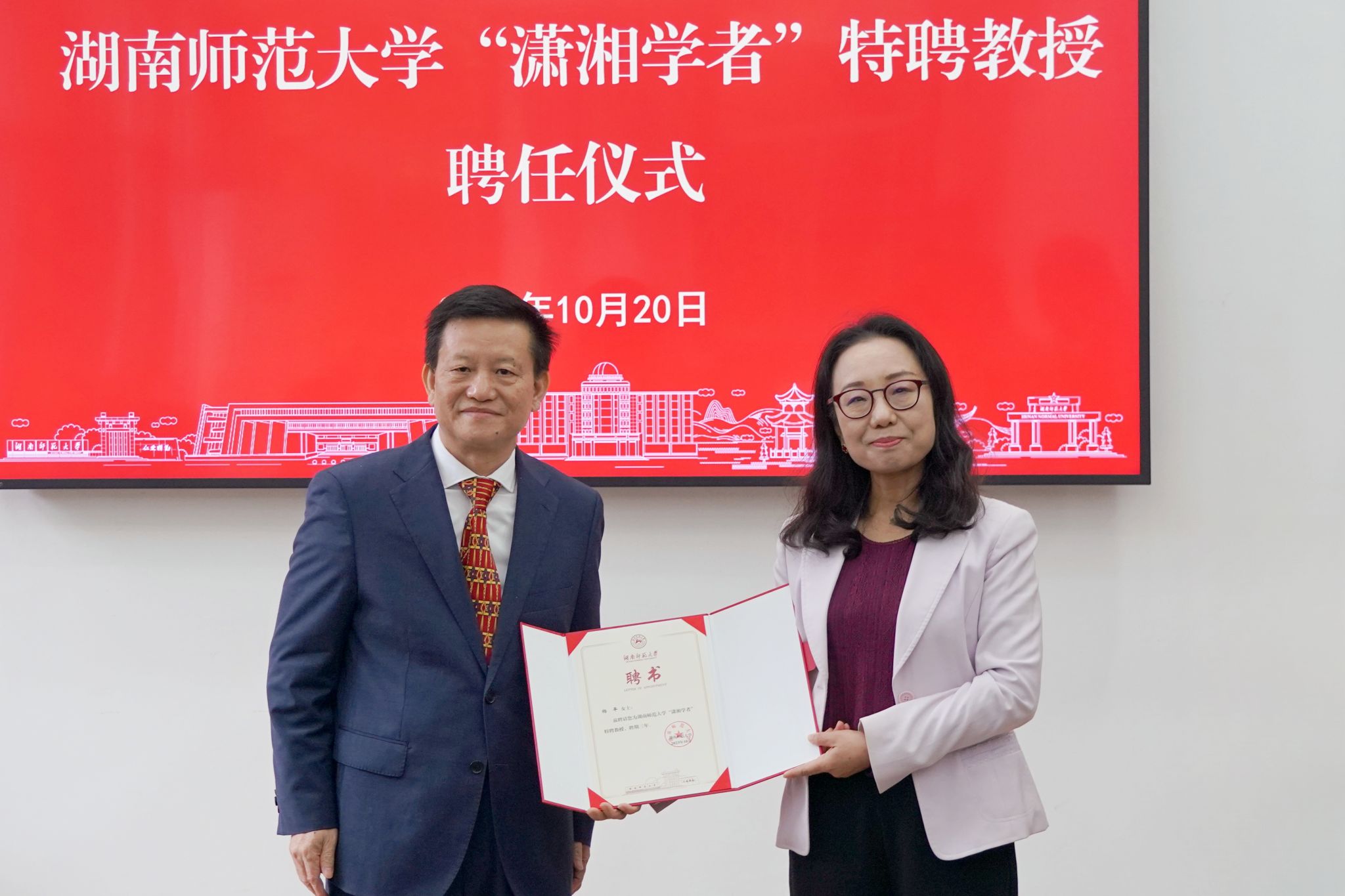 (记者 马铁泉 黄依依)10月20日上午,学校在校办公楼二会议室举行仪式,聘任杨平为我校“潇湘学者”特聘教授。校党委书记蒋洪新、副校长杨震出席仪式,仪式由副校长唐贤清主持。