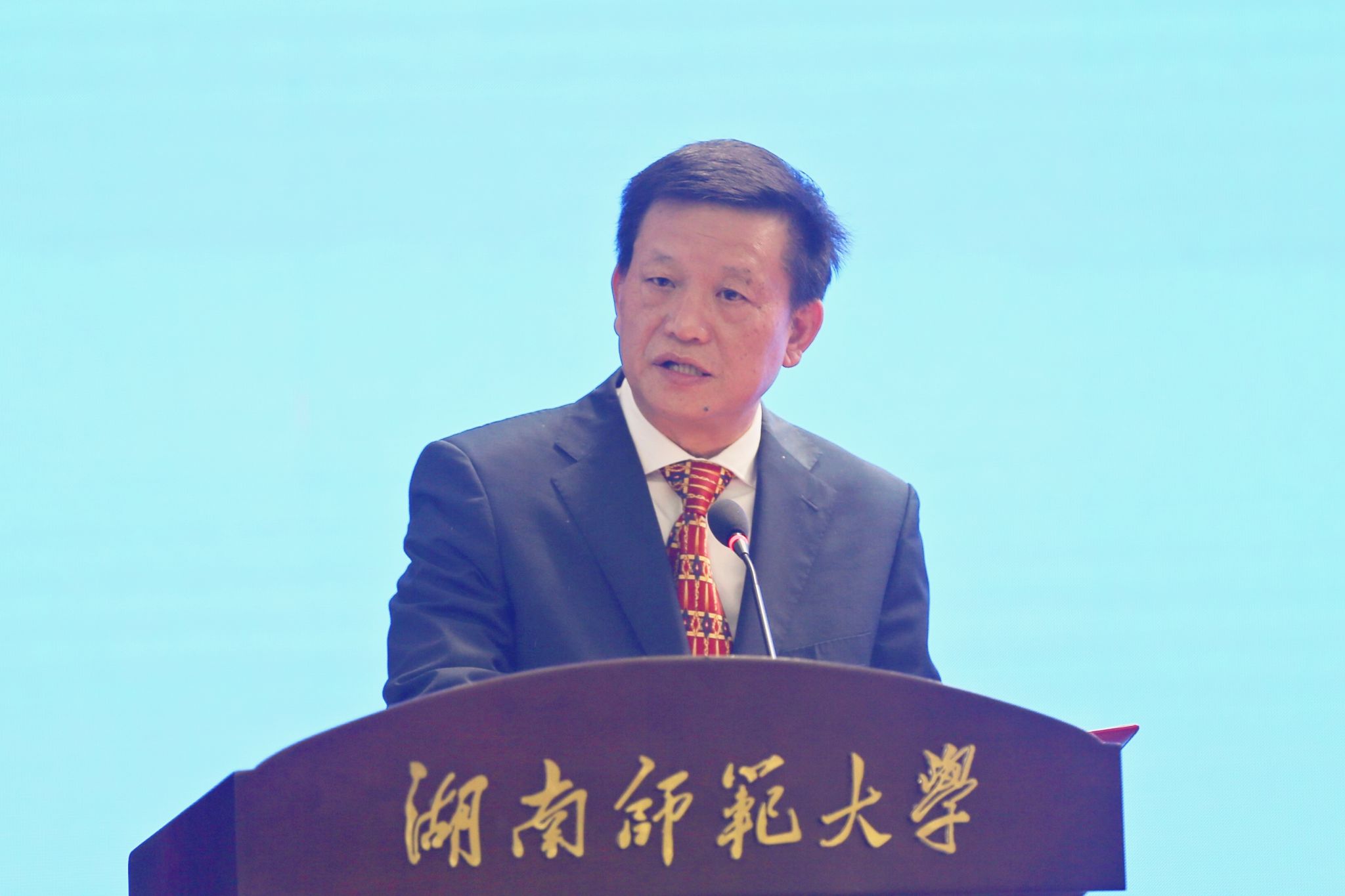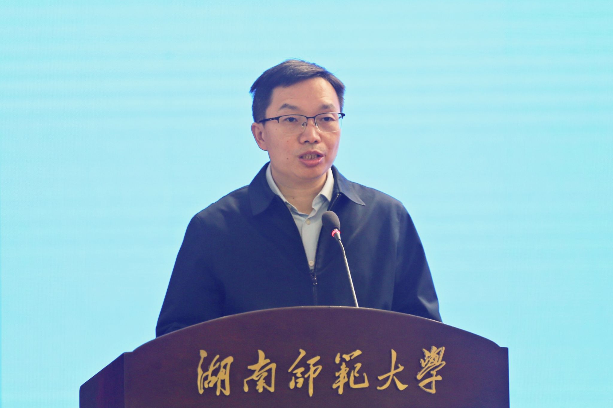 蒋洪新致欢迎辞。他用一副对联向朱洪武书记及永州市委市政府各位领导表示衷心的欢迎:“搭桥牵线,五湖四海任潇湘;筑巢引凤,三高四新兴零陵;横批为“走!去永州””。他表示,永州底蕴深,实力强,是一座誉满潇湘的名城。永州有三美,山水之美,文化之美,和活力之美。他强调,高校与地方是一个息息相关的命运共同体,师大和永州虽各居一地,但双方人缘相亲,心意相通,自2018年校地签订战略合作伙伴以来,双方互动频繁,合作紧密,取得了积极的合作成效,本次开启的教育领域的合作,是对前一次合作的深化和发展,两家携手合作,共谋发展,具有非凡的意义。我校将带着使命、责任和感情,推进落实协议的具体内容,为助力永州经济建设、服务我省三高四新的战略定位和使命任务贡献出湖南师大的智慧和力量。