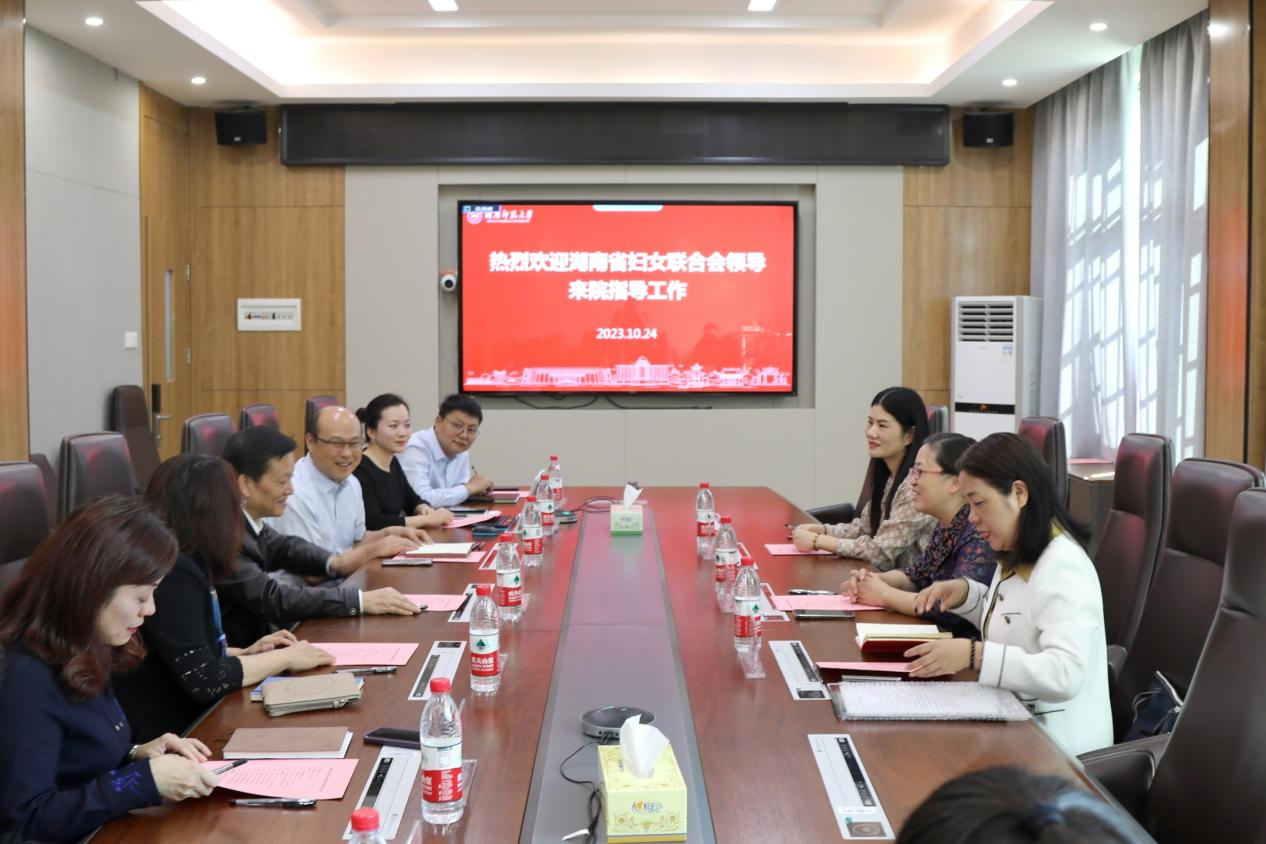 (记者 马铁泉 黄依依)10月24日上午,湖南省妇女联合会副主席钟斌一行来校考察座谈,座谈会在我校腾龙楼204会议室举行,校党委书记蒋洪新出席座谈会,会议由外国语学院党委书记李泳波主持。