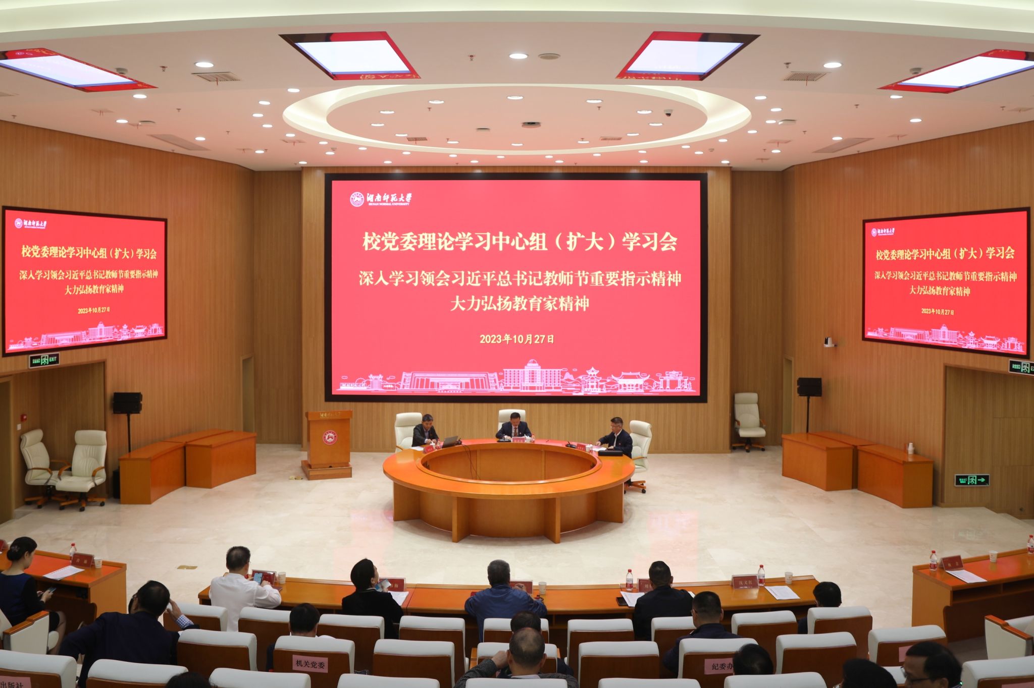 (记者 吴乐 马铁泉 黄依依)10月27日上午,我校召开2023年度第十次党委理论学习中心组(扩大)学习会,专题学习习近平总书记教师节重要指示精神特别是关于大力弘扬教育家精神的重要指示。全体在家校领导、党委委员参加学习会。校党委书记蒋洪新主持学习会。