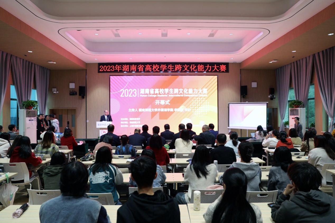 (供稿 外国语学院)11月11日至12日,由湖南省教育厅主办、我校承办的2023年湖南省高校学生跨文化能力大赛在外国语学院举行。我校副校长王辉出席大赛开幕式。开幕式由外国语学院党委书记李泳波主持。