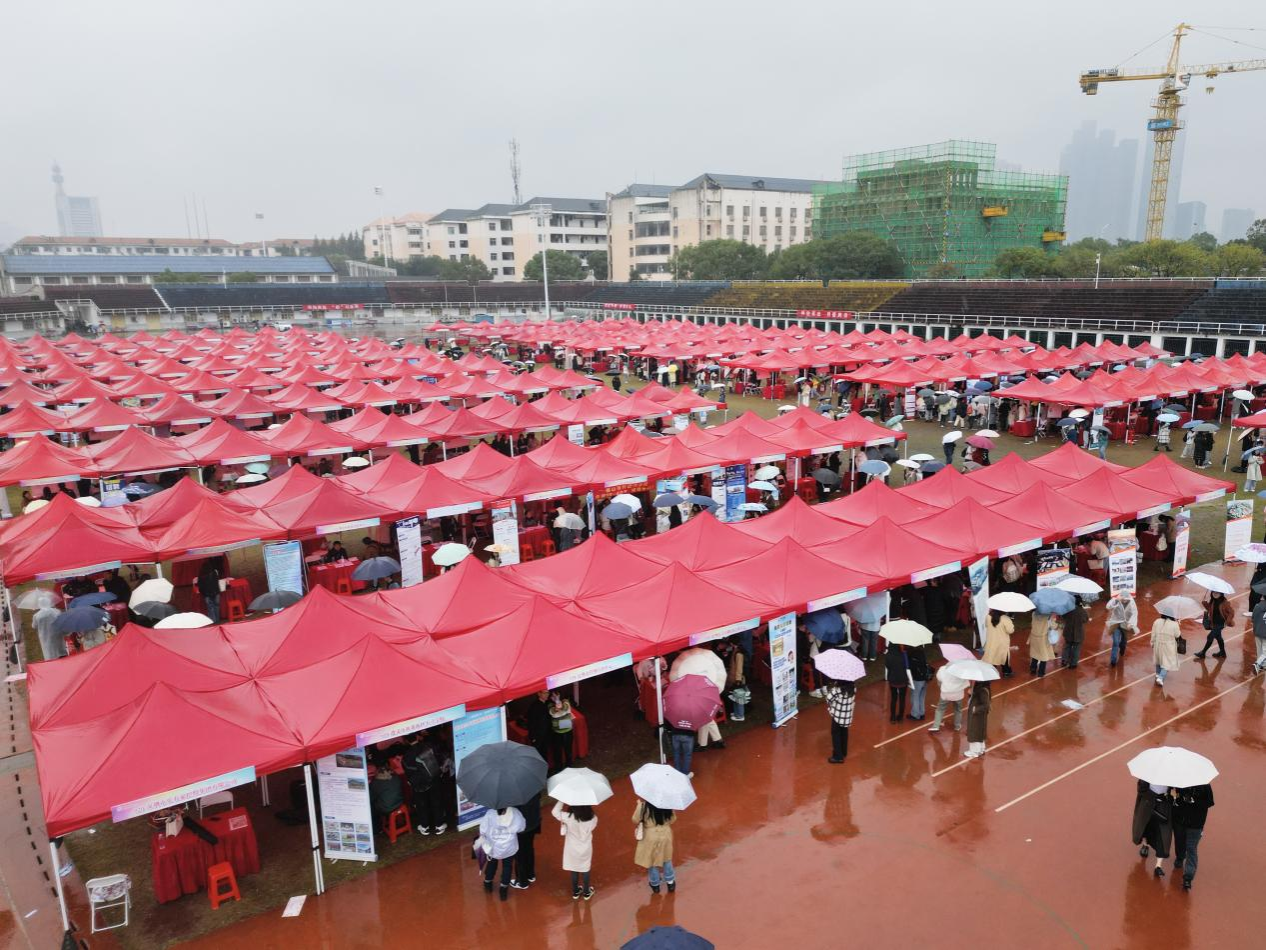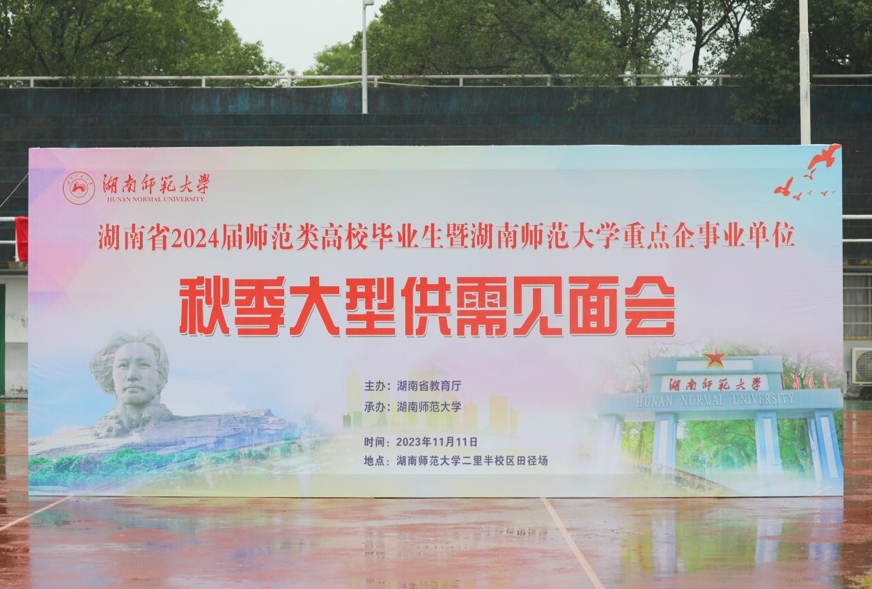 (记者 项和烽 梅玉婷)11月11日,湖南省2024届师范类高校毕业生暨我校2024届毕业生秋季重点企事业单位大型招聘会在学校田径场举行。湖南省就业指导中心主任钟秋明、副主任曾静,我校副校长王辉到场指导。