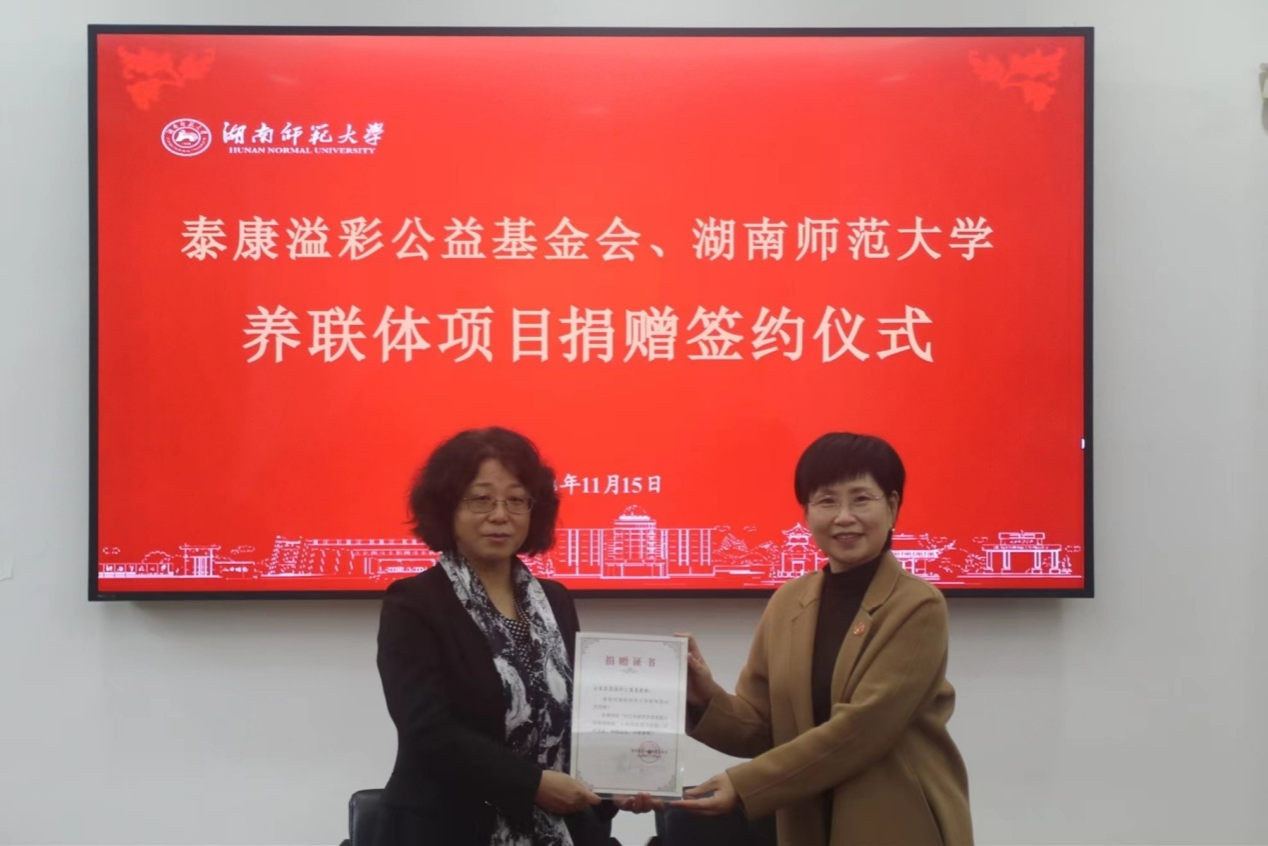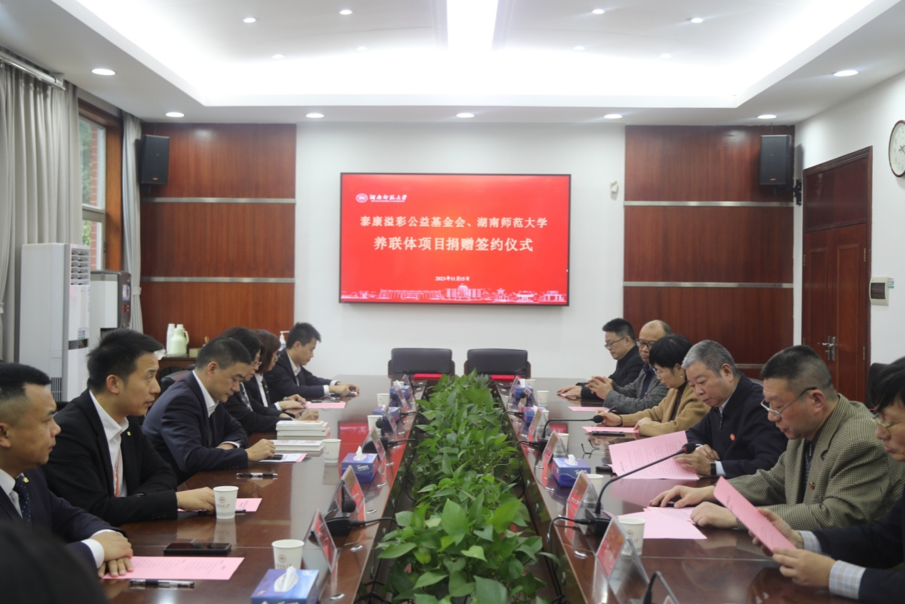 (记者 何文沛 夏文静)11月15日下午,北京泰康溢彩公益基金会与我校养联体项目捐赠签约仪式在校办公楼二会议室举行,泰康保险集团管委会成员、泰康之家首席执行官邱建伟,校党委副书记周俊武出席会议。会议由离退休工作处处长王齐主持。
