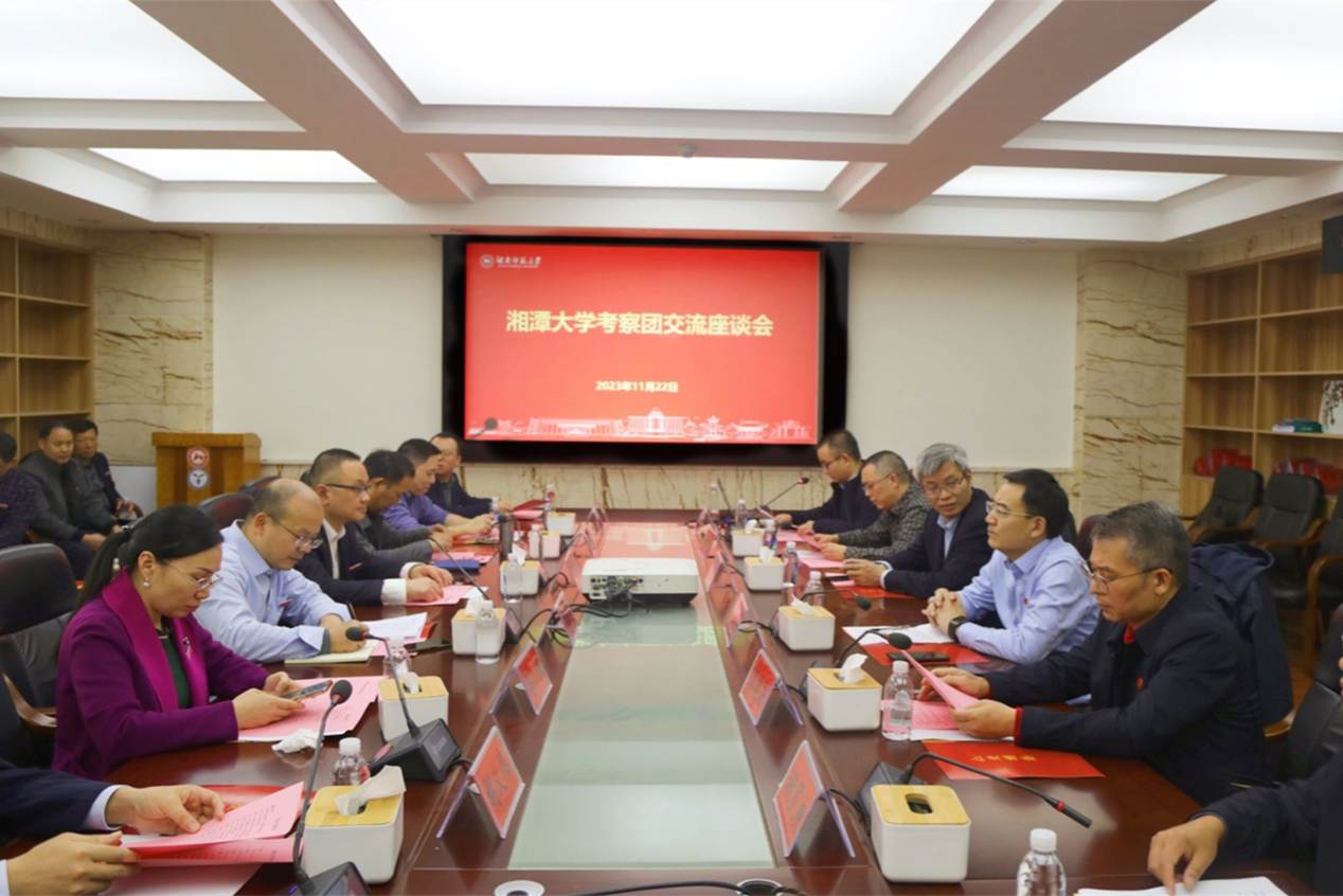 (记者 丁美玲 何子慧 张婧茹 何顺福)11月22日下午,湘潭大学党委副书记廖永安一行来我校考察交流,我校党委副书记周俊武会见了考察团一行,副校长王辉陪同考察并出席文科组座谈会。