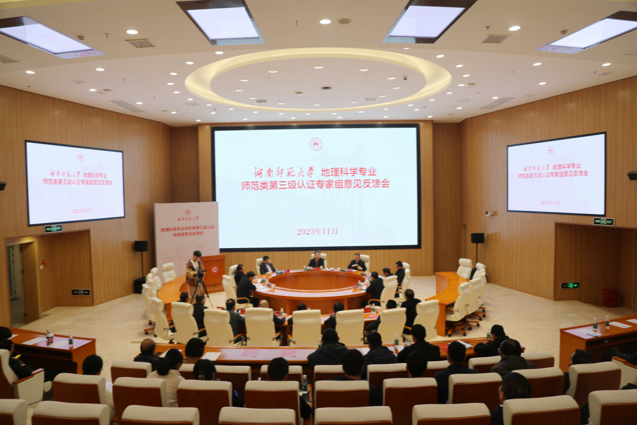 11月25日,召开专家组意见反馈会。专家组成员分别对考查情况进行了反馈,提出了持续改进的建议。我校地理科学学院院长周国华、音乐学院院长廖勇分别针对专家组反馈意见作了表态发言。大家一致表示将虚心接纳建议,认真反思,深入剖析问题的根源,切实整改,形成长效机制,完善与师范类专业三级认证要求相对接的体制机制,奋力实现国内一流地方高校师范专业发展引领者的目标。