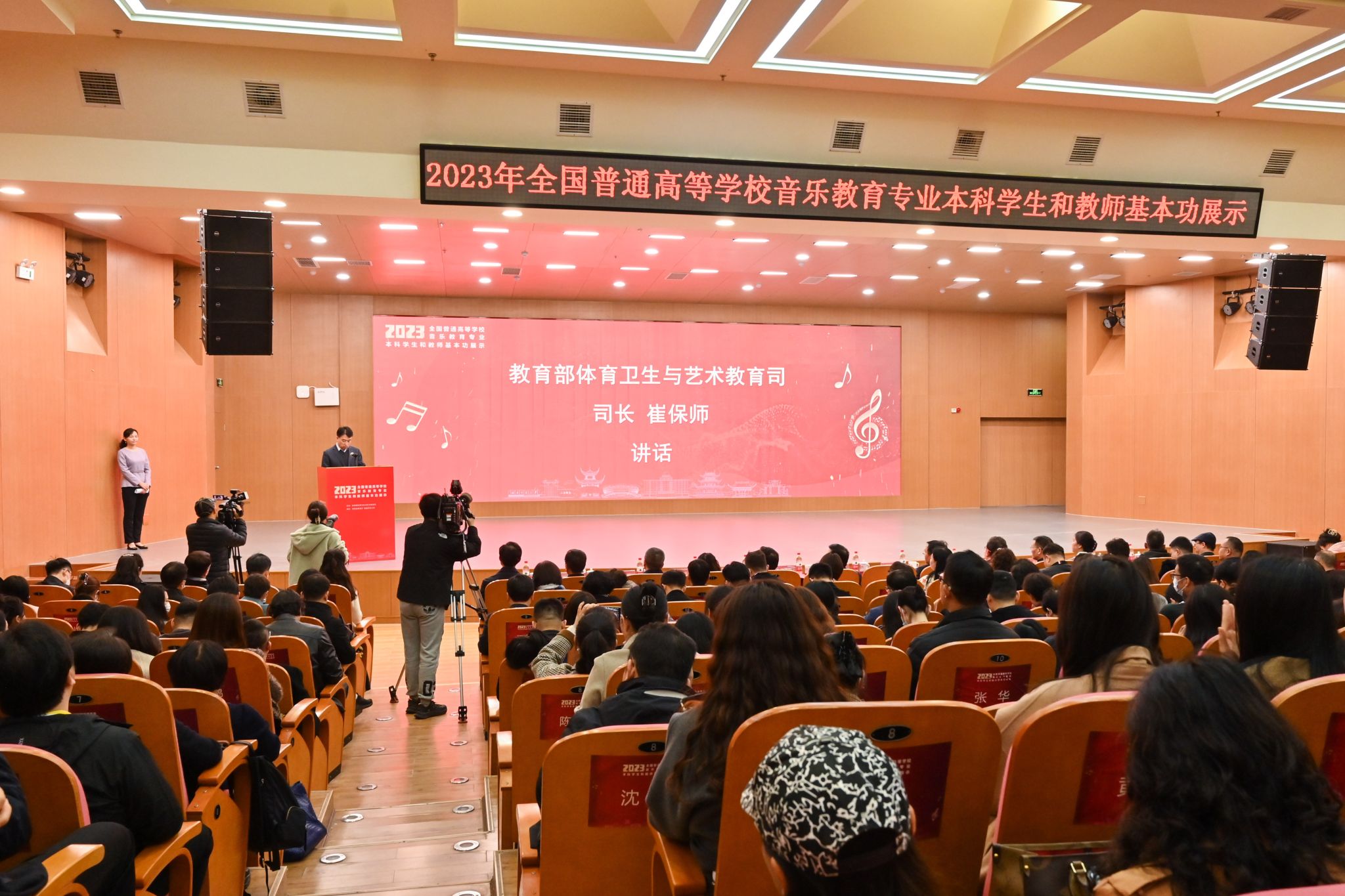 (记者 马铁泉 黄依依)12月5日上午,由教育部体育卫生与艺术教育司主办,湖南省教育厅和我校承办的2023年全国普通高等学校音乐教育专业本科学生和教师基本功展示在我校音乐学院和乐楼举办。教育部体育卫生与艺术教育司司长崔保师,湖南省教育厅副厅长刘静,我校党委书记蒋洪新、副校长刘怀德出席活动。开幕式由教育部体育卫生与艺术教育司艺国处三级调研员刘立京主持。
