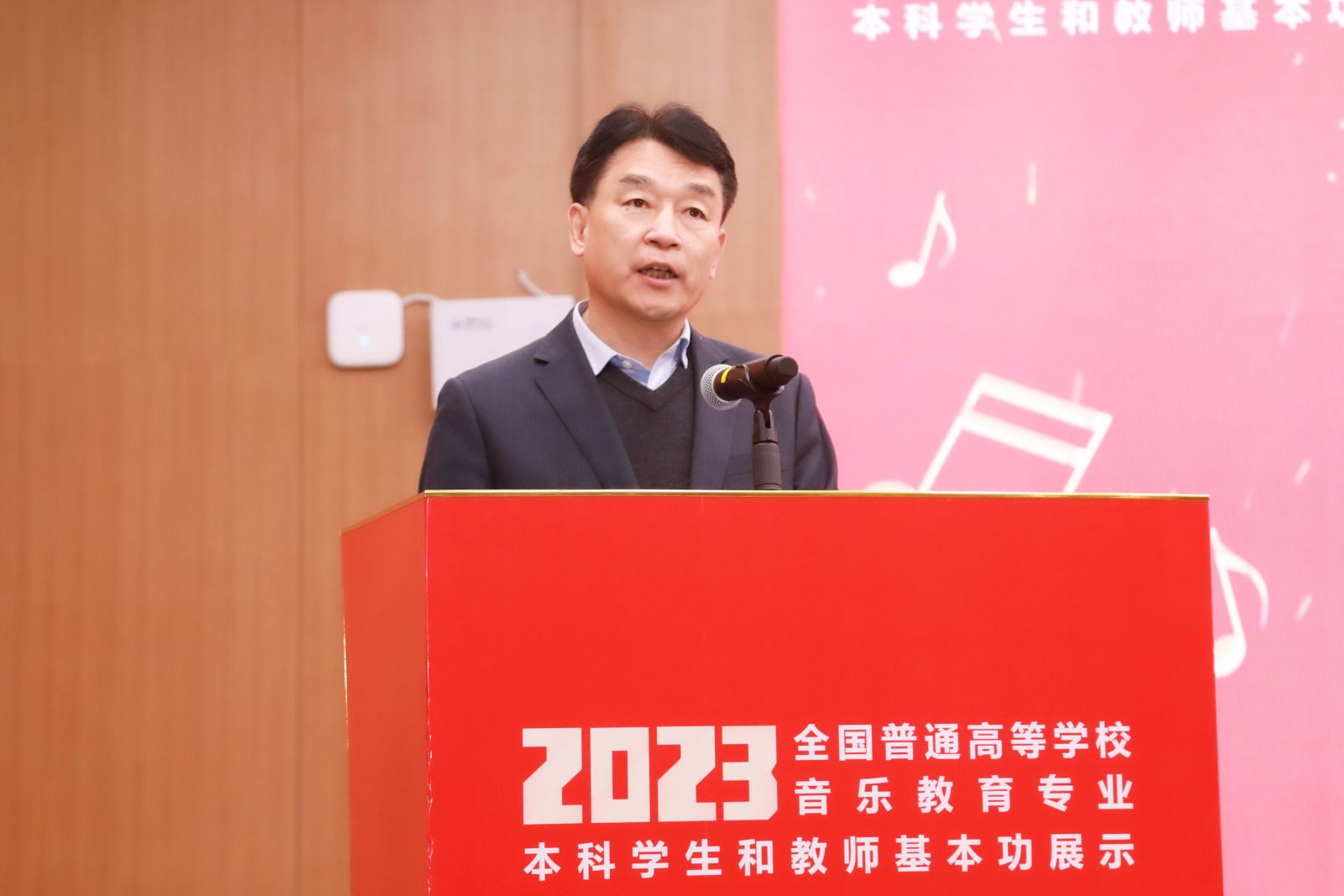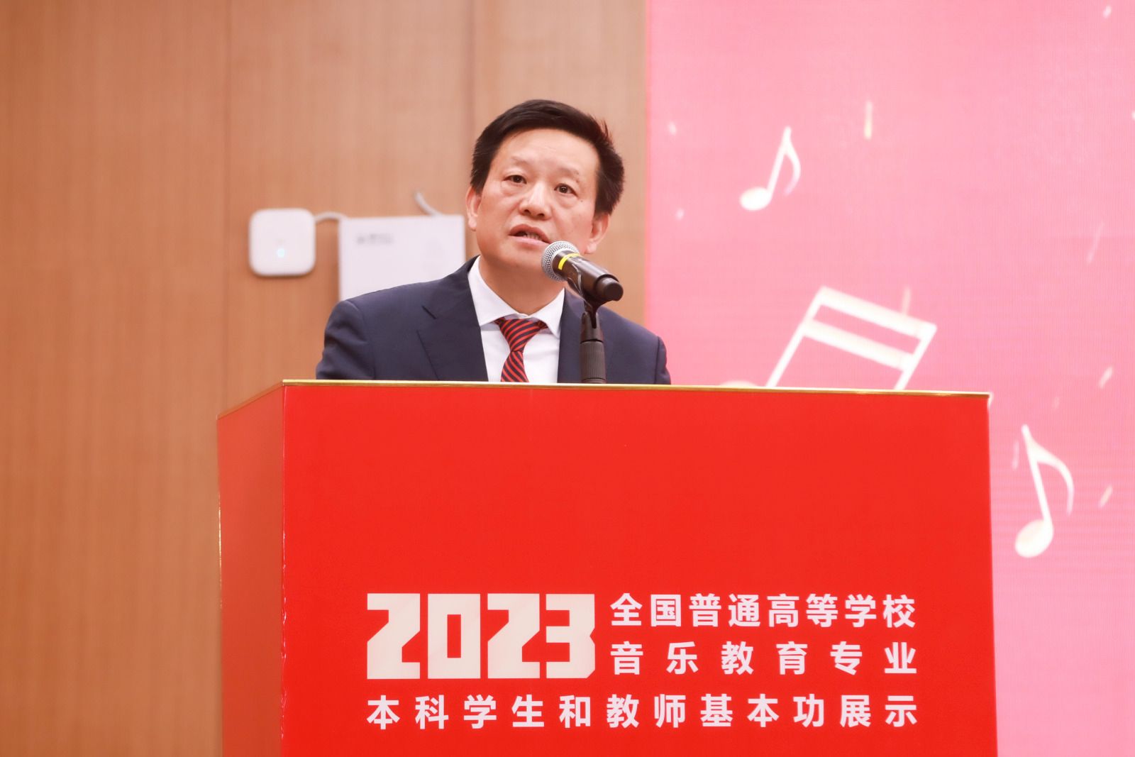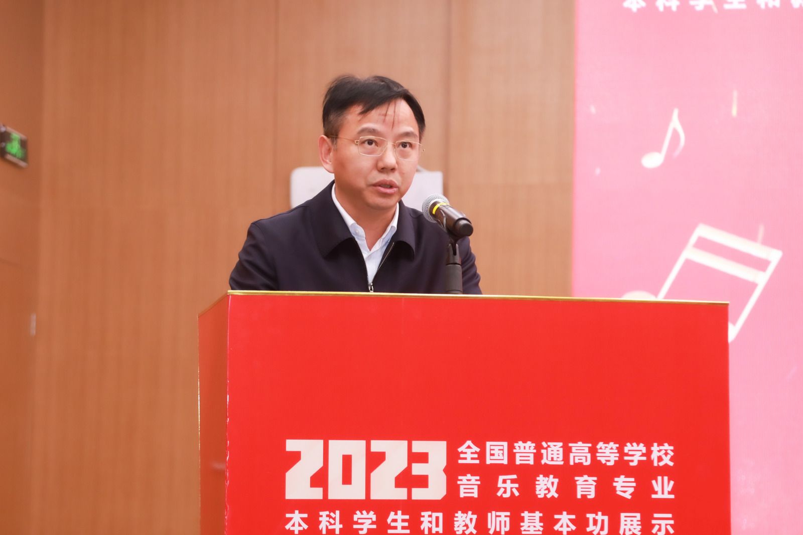 蒋洪新对教育部和省教育厅的厚爱与支持表示衷心的感谢,向各位嘉宾的到来表示热烈的欢迎。他指出,音乐教育作为一种审美教育,是实施美育的重要途径。作为国家“双一流”大学,我校一直将音乐教育发展放在重要地位。近年来,学校在师资队伍建设、办学条件改进和实践育人等方面取得了一定成效。他表示,学校将全力做好保障工作,通过本次展示助推学校教育教学、人才培养、师资队伍建设,进一步加强院校之间的联系与沟通,推动音乐教育向高质量迈进。