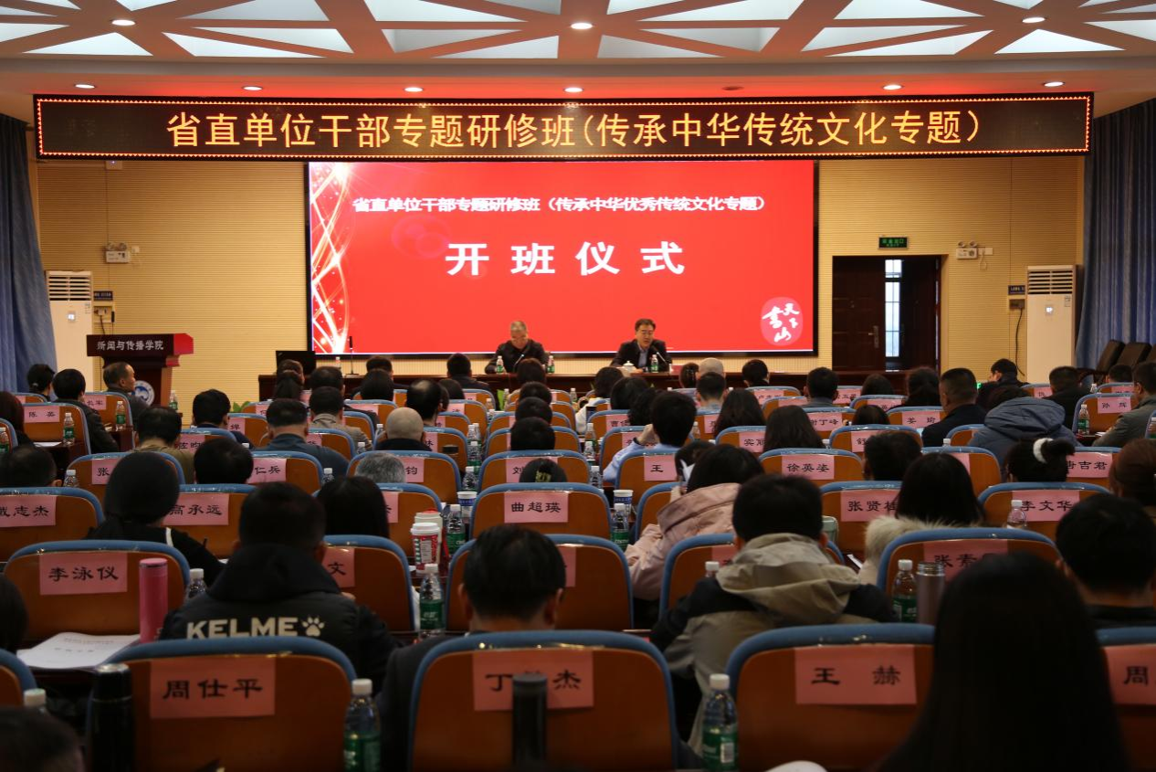 (通讯员 黄颖)12月11日上午,湖南省“传承中华优秀传统文化”干部专题研修班开班仪式在我校新闻与传播学院书山论坛举行。校党委副书记周俊武出席仪式。仪式由党委委员、组织部部长沈又红主持。