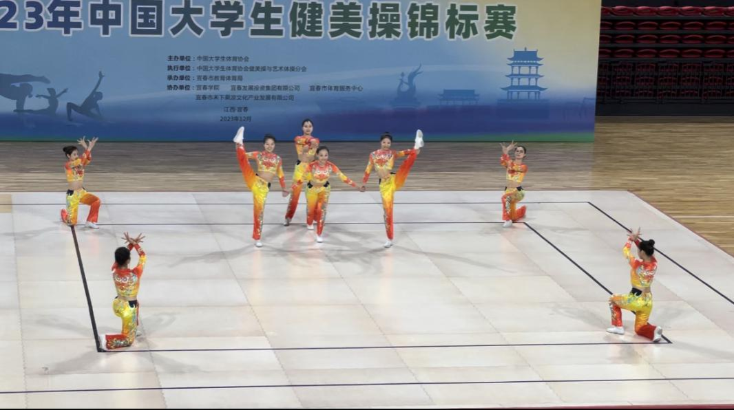 (供稿 体育学院)12月8日上午,2023年中国大学生健美操锦标赛在宜春体育公园正式开幕。我校体育学院学子唐雅雯获女子单人操金牌,刘东升、李美颉、于苑获混合三人操金牌,刘东升获男子单人操铜奖,汤家琳等获团体有氧舞蹈第四名。