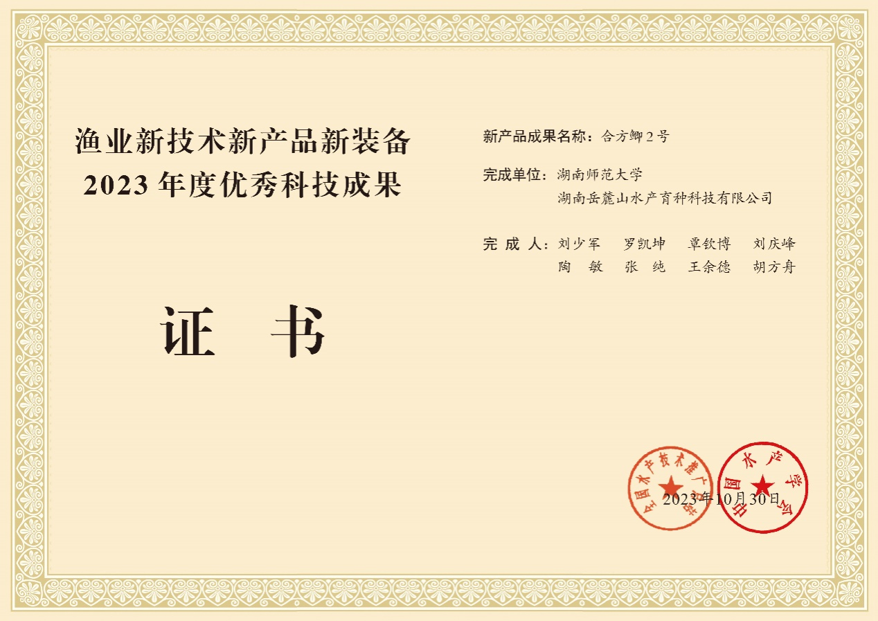 (供稿 生科院)近日,由全国水产技术推广总站、中国水产学会举办的中国水产学会成立60周年暨2023范蠡学术大会在重庆市召开。大会公布了渔业新技术新产品新装备2023年度优秀科技成果,中国工程院院士、淡水鱼类发育生物学国家重点实验室主任刘少军领衔团队研制的国家水产新品种——“合方鲫2号”荣获渔业新产品2023年度优秀科技成果奖。