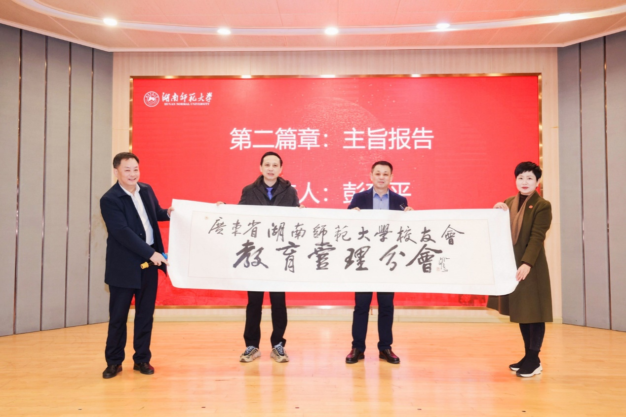 王辉代表学校为广东省华亿体育登录校友会教育管理分会赠送名家题字。