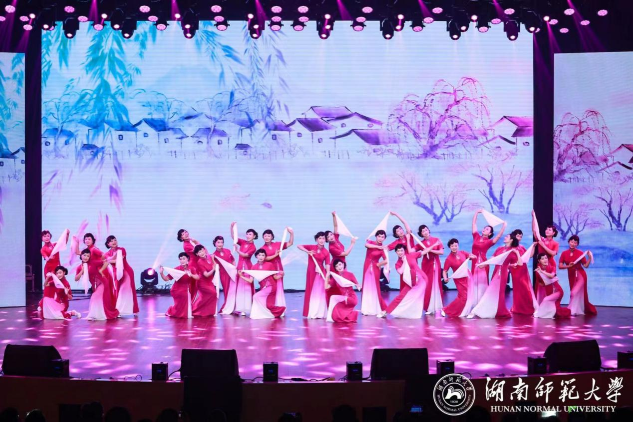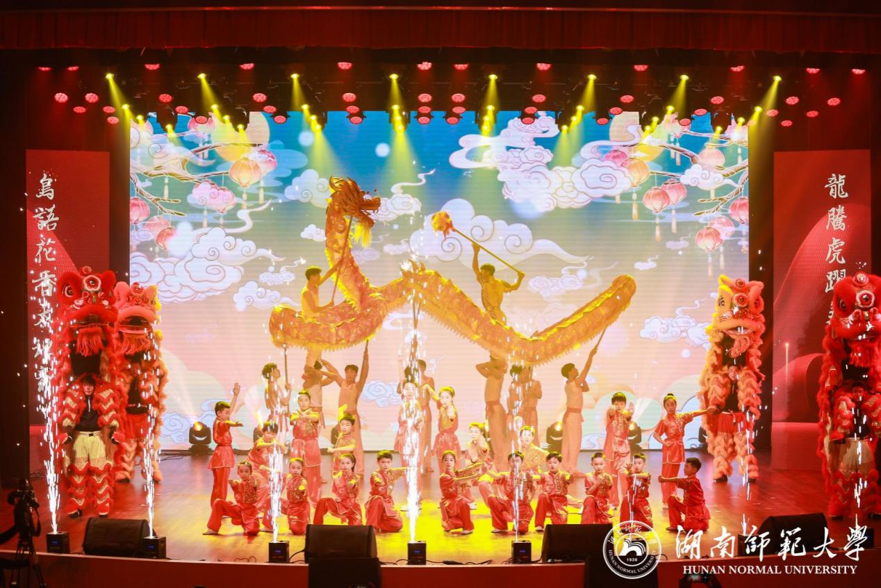 我校新年联欢会在体育学院和附小带来的开场秀《龙翔凤舞》中拉开序幕,此秀犹如破云之龙,点燃全场热情。一首《cheek to cheek》,爵士风情浓郁,尽展我校青年教师之风采。群舞表演《永不停歇》用青春之姿表达附中青年对国家始终如一的热爱。附属湘东医院用情景朗诵《红医传承》讲述红医精神传承故事,展英雄之光,讲英雄文化,传英雄精神。民族器乐表演《乐旋雅韵》承载着对音乐之美的理解与追求,演奏出了宫商角徵羽的壮阔辉煌。舞蹈创意秀《中国旗袍》,我校女教职工代表身着中国传统旗袍,展飘逸、典雅之姿。混声合唱《在银色的月光下》以月为水,以月为歌,激荡彼此情谊,唱响心中激昂。第一附属医院(省人民医院)创意舞蹈《绘彩疗方一舞绘千年导引图》重现2100年之前的保健运动导引图谱。相声表演《放鞭炮》在开怀大笑中思考工作生活之道。舞蹈《铜铃魂》运用非遗项目湘西土家族“八宝铜铃”舞蹈语汇,呈现土家族人民勤劳勇敢、自强不息的精神面貌。国际学生经典诵读《青春》展示我校国际青年在构建美好世界和人类命运共同体中的责任与担当。女子独唱《七律》,飒爽英姿、激越歌声,唱响千年学府岳麓书院“实事求是”“敢为人先”的民族强音。晚会在雄浑动人的合唱与交响曲《缆车》《领航》中完美落幕。“乘风破浪,扬帆远航,领航中国在新时代的征程上。”回首过往,我校在长期的发展过程中,经过历史的沉淀、选择、凝聚,形成了以“仁爱精勤”为精髓的独特大学文化。展望未来,师大人将传承和弘扬先辈精神,以永不懈怠的精神状态和一往无前的奋斗姿态,朝着建设教师教育特色鲜明、国内一流、国际上有影响的高水平综合型大学的目标奋勇前进。