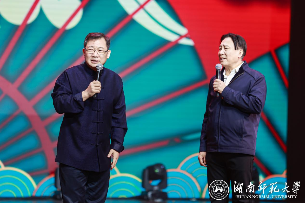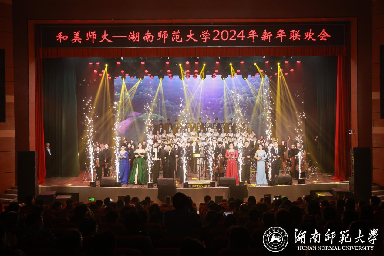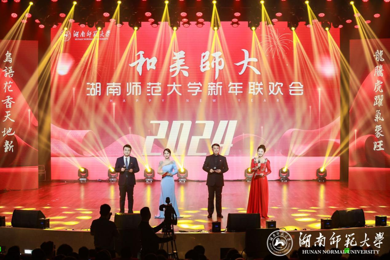 (记者 马铁泉 黄依依 刘偲睿 谢天峰 黄芷舟 薛舒丹)12月27日下午,我校“和美师大”2024年新年联欢会在附中学生活动中心举行。省人大常委会原副主任、省文化艺术基金会主席肖雅瑜,长沙市政协党组书记、主席陈刚,湖南农业大学党委书记陈弘,省委教育工委宣传部部长、省教育厅思政处处长甘文波,省教育工会副主席邓曼,浙江大学教授郑强,欧洲科学院院士、校党委书记蒋洪新,第二十届中央候补委员、中国工程院院士、校长刘仲华及全体在家校领导出席联欢会。