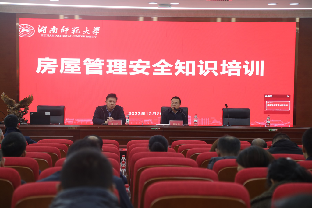 (记者 李影 胡欣睿)12月28日下午,我校在中和楼342报告厅召开学校房屋管理安全知识培训会。副校长刘怀德、湖南大学土木工程学院教授陈大川出席本次会议。会议由房地产管理处处长熊剑峰主持。
