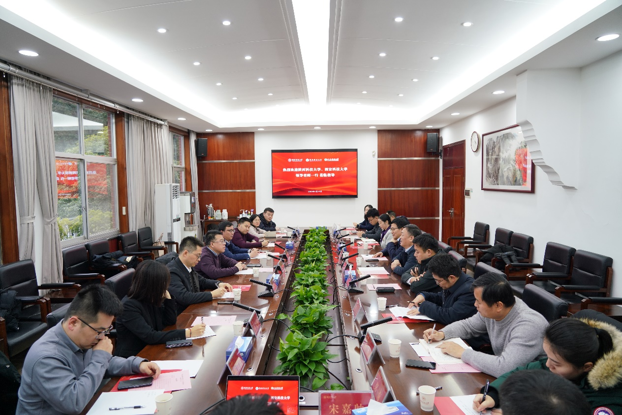 (记者 刘偲睿)1月20日,陕西科技大学党委副书记郭强带队来校专题调研交流高校思想政治工作,调研座谈会在校办二会议室举行,我校副校长王辉出席座谈会,会议由学生工作部部长向发意主持。