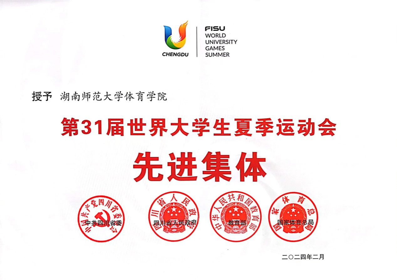 (通讯员 胡雨雯)近日,教育部、国家体育总局等联合发布《关于表彰第31届世界大学生夏季运动会先进集体和先进个人的决定》,我校体育学院被授予“第31届世界大学生夏季运动会先进集体”称号。我校2020级运动训练专业本科生张博恒、2021级运动训练专业本科生王正行被授予“先进个人”称号。
