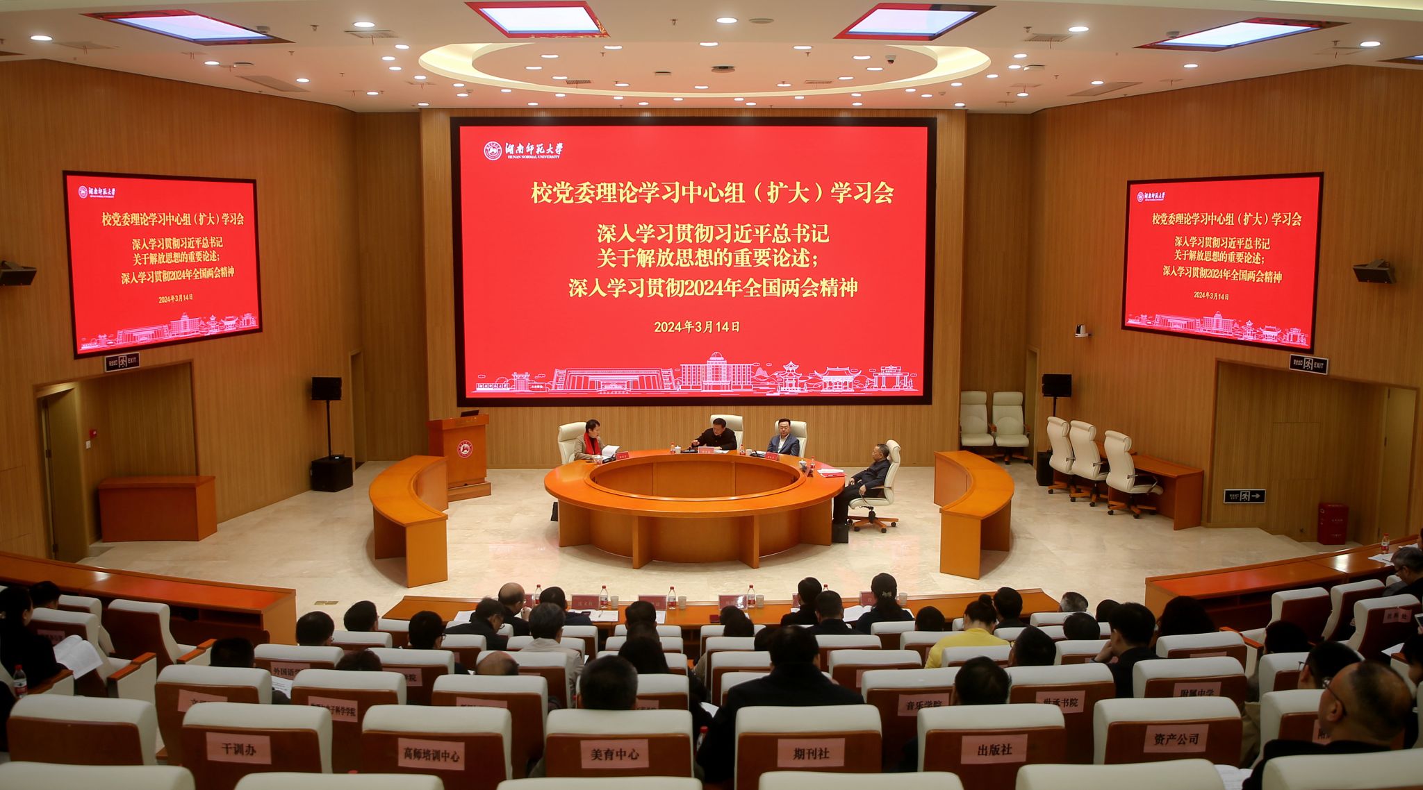 (记者 吴乐 郭若兰 黄依依)3月14日上午,校党委理论学习中心组(扩大)在图书馆报告厅召开学习会,深入学习贯彻习近平总书记关于解放思想的重要论述和2024年全国两会精神。欧洲科学院院士、校党委书记蒋洪新主持会议。