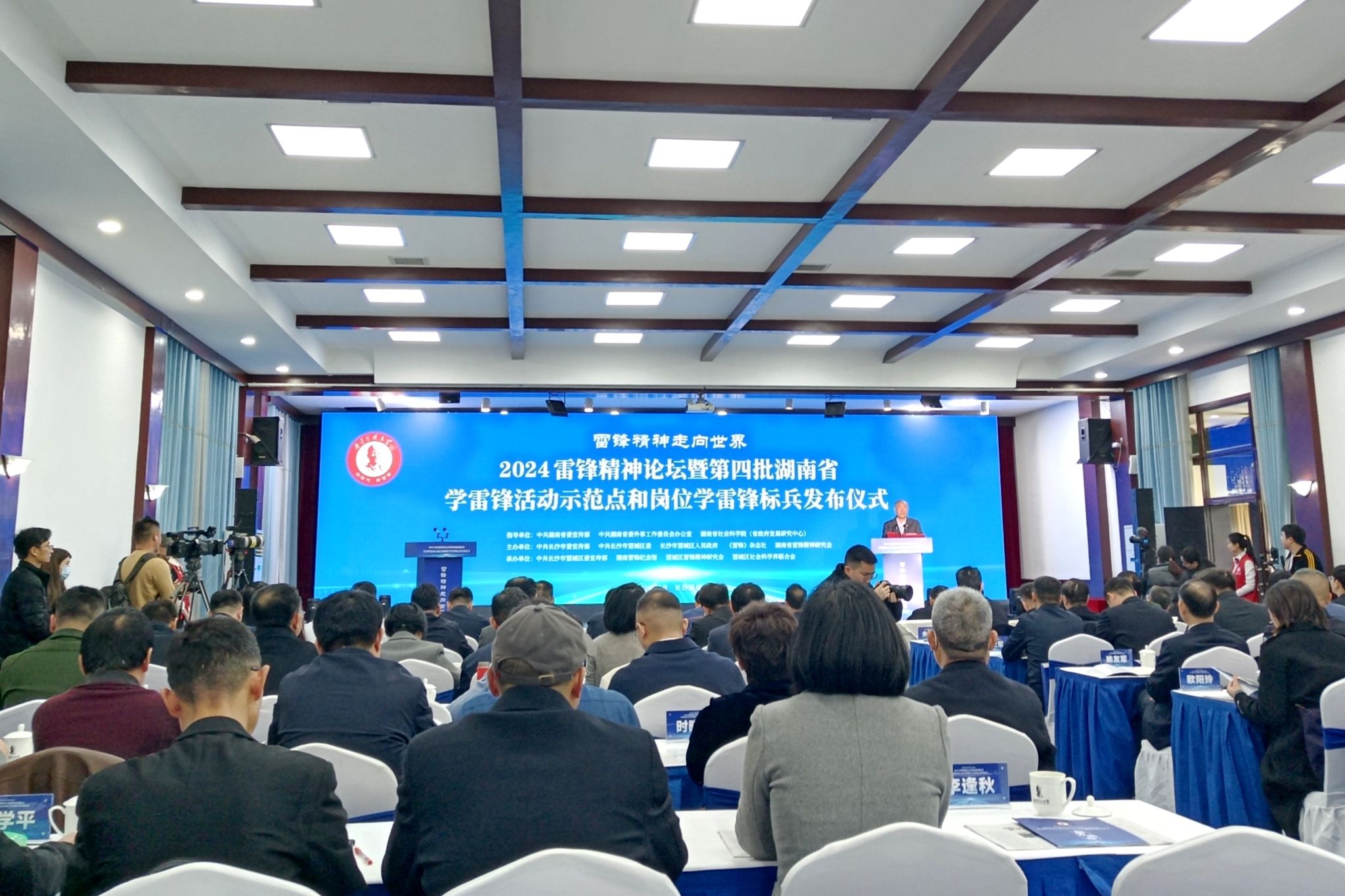 (记者 李洋 通讯员 刘晨晖)3月13日上午,2024雷锋精神论坛暨第四批湖南省学雷锋活动示范点和岗位学雷锋标兵发布仪式在长沙望城区湖南雷锋纪念馆举行。我校道德文化研究院院长向玉乔作为理论专家应邀出席活动并作专题发言。撒伽、高翔、徐瑞萍三名留学生作为学雷锋典型代表参加活动。外国语学院获评第四批湖南省学雷锋活动示范点。